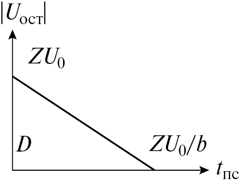 Величина остаточного напряжения на накопительном конденсаторе после погасания разряда в свече UОСТ определяется условиями гашения разряда, является случайной величиной и может меняться от разряда к разряду под действием параметров среды и топливовоздушного потока в камерах сгорания. Условие гашения разряда формулируется следующим образом: искровой разряд в свече гаснет при очередном прохождении разрядного тока через ноль, если в последующие моменты времени электрическая прочность разрядного промежутка между электродами свечи превышает имеющееся напряжение на накопительном конденсаторе [2].