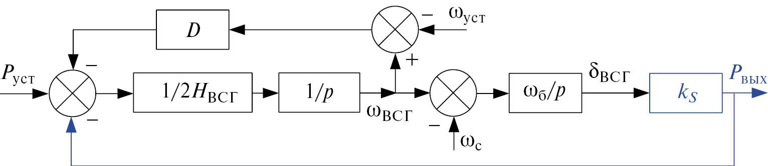 Рис. 3. Схема замкнутой передаточной функции контура по управлению активной мощностью для ВСГ-Н