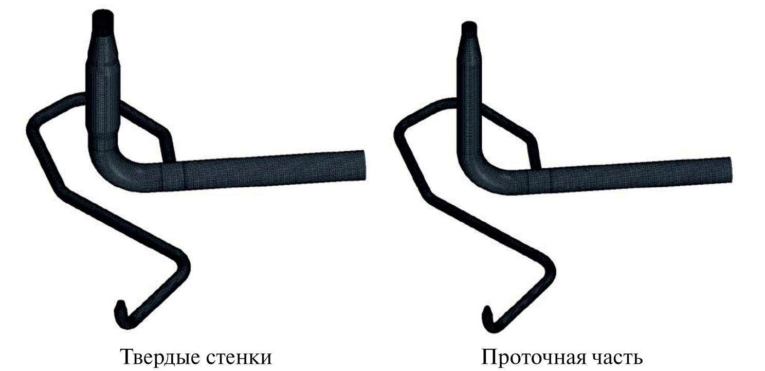 Стенки трубопроводов не моделируются. На внешней поверхности модели трубопроводов были заданы адиабатические условия теплообмена.