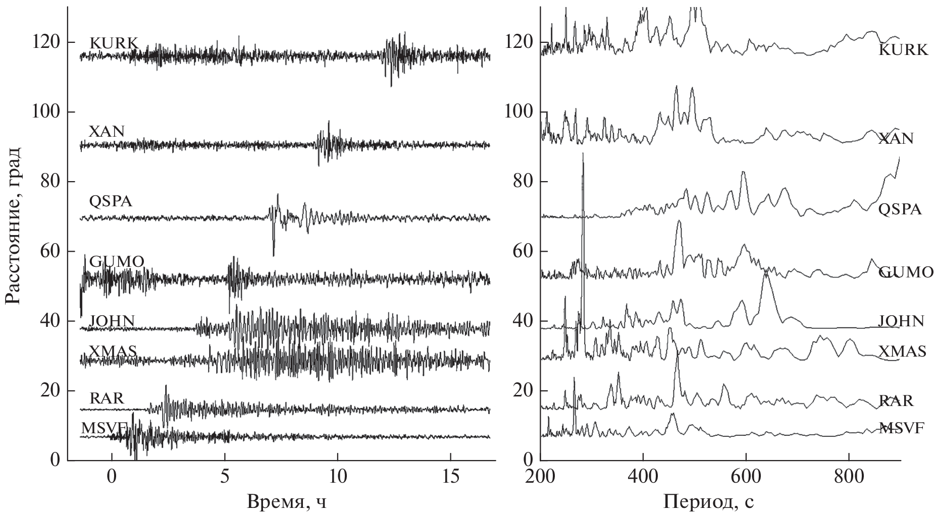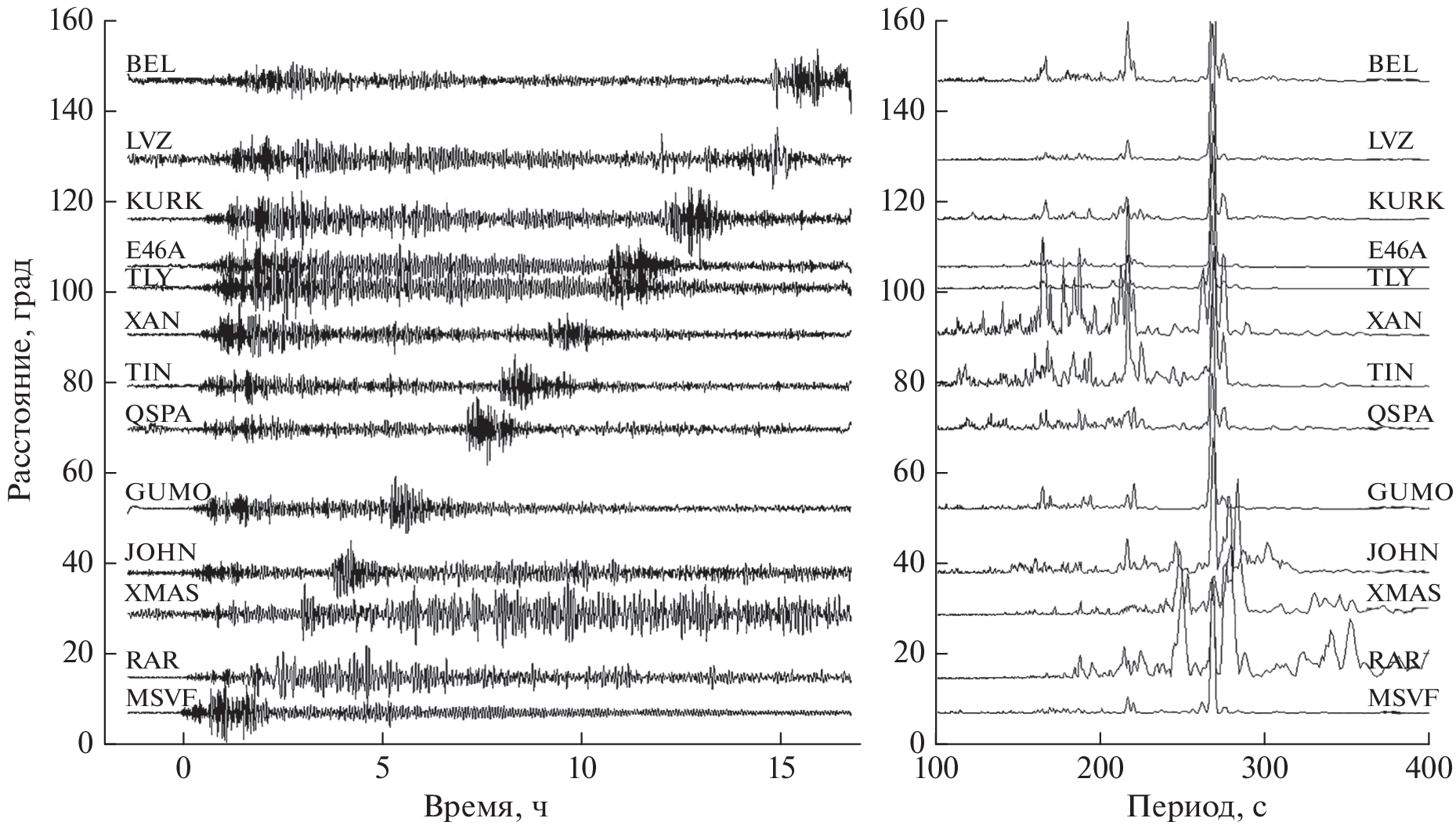 The study of changes in the seismic process associated with the eruption and the assessment of the energy parameters and structure of the wave field from seismic data is the subject of this work. Three types of disturbances are distinguished in the structure of the wave field. First of all, these are Rayleigh surface waves with an average oscillation period of 23 s, well traceable at distances up to 100 degrees. The group velocity of Rayleigh waves is 3.6–3.8 km/s. The magnitude calculated from them at stations mainly with oceanic propagation paths is Ms = 5.52 ± 0.18, and the corresponding seismic energy was on the order of Ec = (1–7) × 1013 J, and the scalar seismic moment M0 =2.4 × 1017 J. Two other types of oscillations were detected on seismic channels with a frequency band from 0.0003 to 0.1 Hz of the stations. For the first, the apparent velocity of propagation of the disturbance lies in the range of 0.28–0.37 km/s with a characteristic period of 268 s. This type of disturbance is associated with the gravitational response of the seismometer to an acoustic disturbance in the atmosphere. For the second type of seismic disturbances, the propagation velocity is 0.21–0.28 km/s with characteristic periods of 450 s on the horizontal components of seismic receivers. This type of seismic disturbance is probably caused by the interaction of the gravitational wave in the hydrosphere with the coast of the islands on which the seismic stations are located.