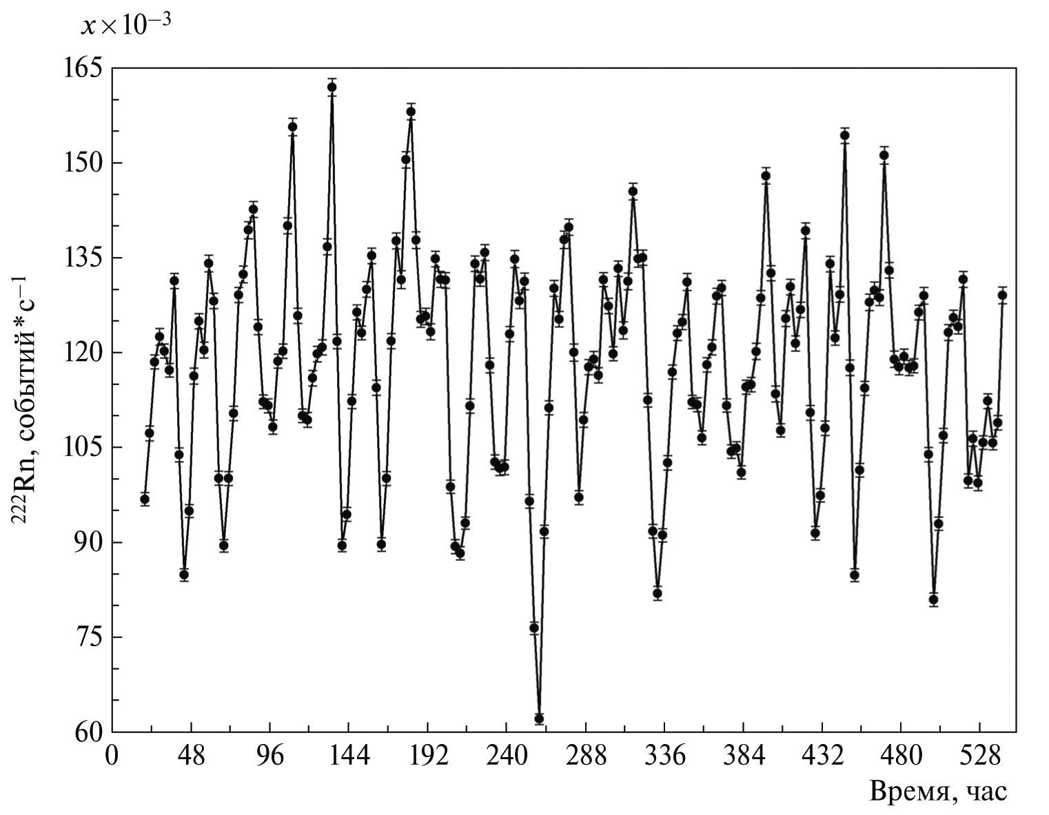 Рис. 5. Вариации скорости счета 222Rn из контрольной скважины в период 24.01.2020 г.–27.07.2020 г.