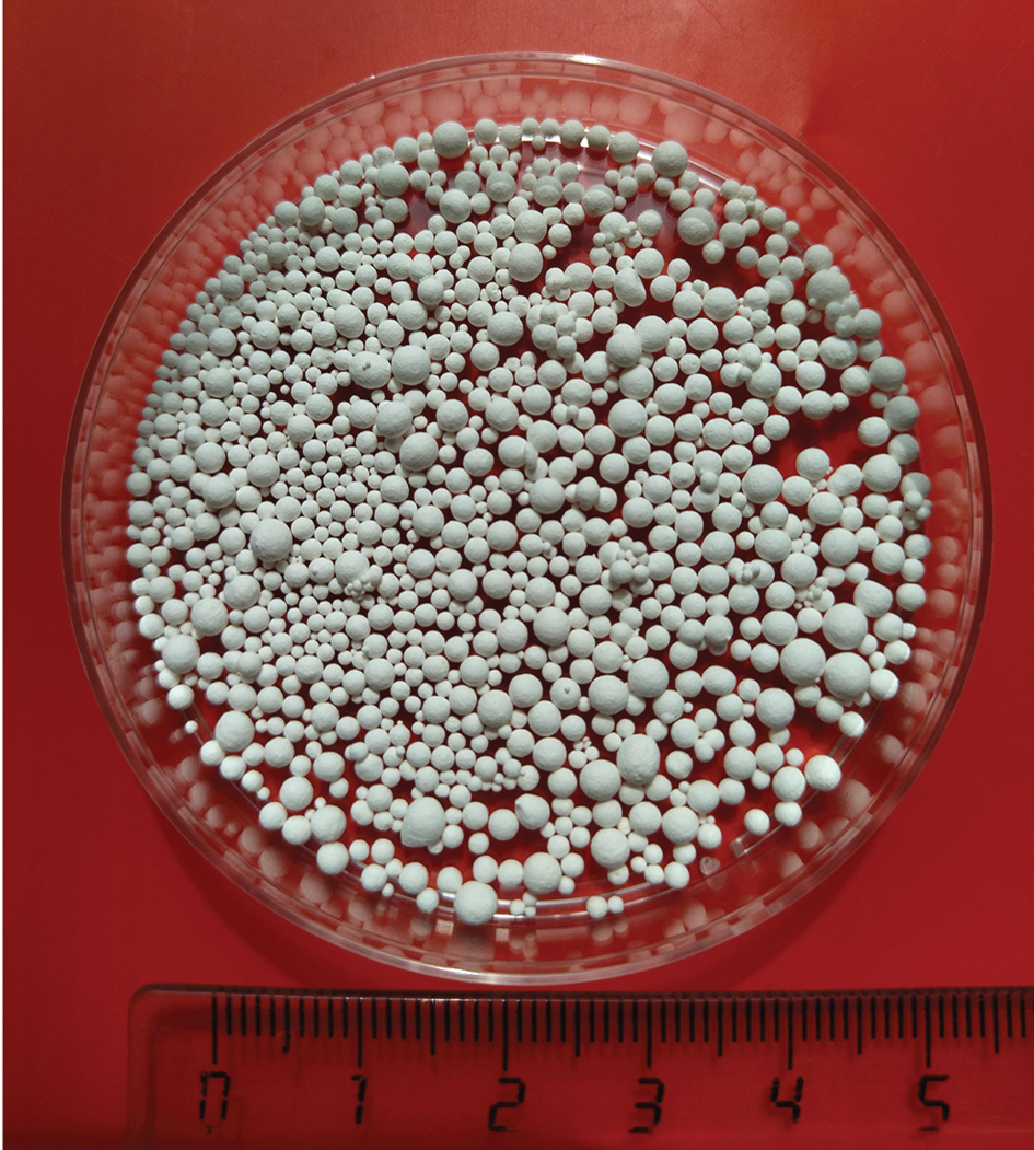 Spherical granules have been produced via suspension processing from synthetic ceramic powders consisting of calcium silicate hydrate and poorly crystallized carbonated hydroxyapatite in a wide range of ratios, using gelatin as a polymer binder. It has been shown that the experimental conditions of this study lead to the formation of polydisperse granules ranging in diameter from 500 μm to 5 mm and having open porosity on the order of 40–60%. The granulated materials contain 19–29 wt % gelatin and 60–75 wt % inorganic salts.