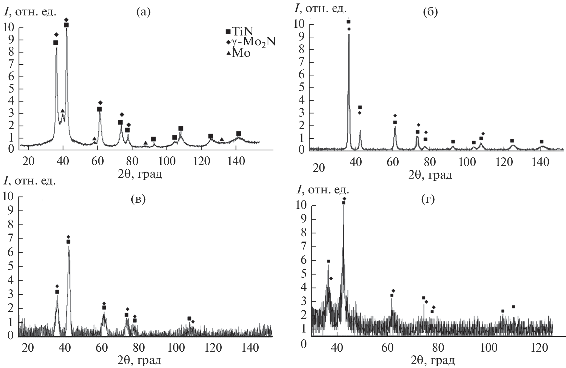 Структуро- и фазообразование в системах Ti–Al–Mo–N и Ti–Al–Mo–Ni–N при осаждении покрытий ионно-плазменным вакуумно-дуговым методом
