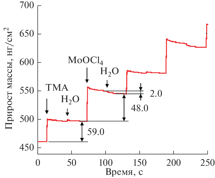 - Wind R.A., George S.M. Quartz Crystal Microbalance Studies of Al2O3 Atomic Layer Deposition Using Trimethylaluminum and Water at 125°C // J. Phys. Chem. A. 2010. V. 114. № 3. P. 1281–1289. https://doi.org/10.1021/jp9049268