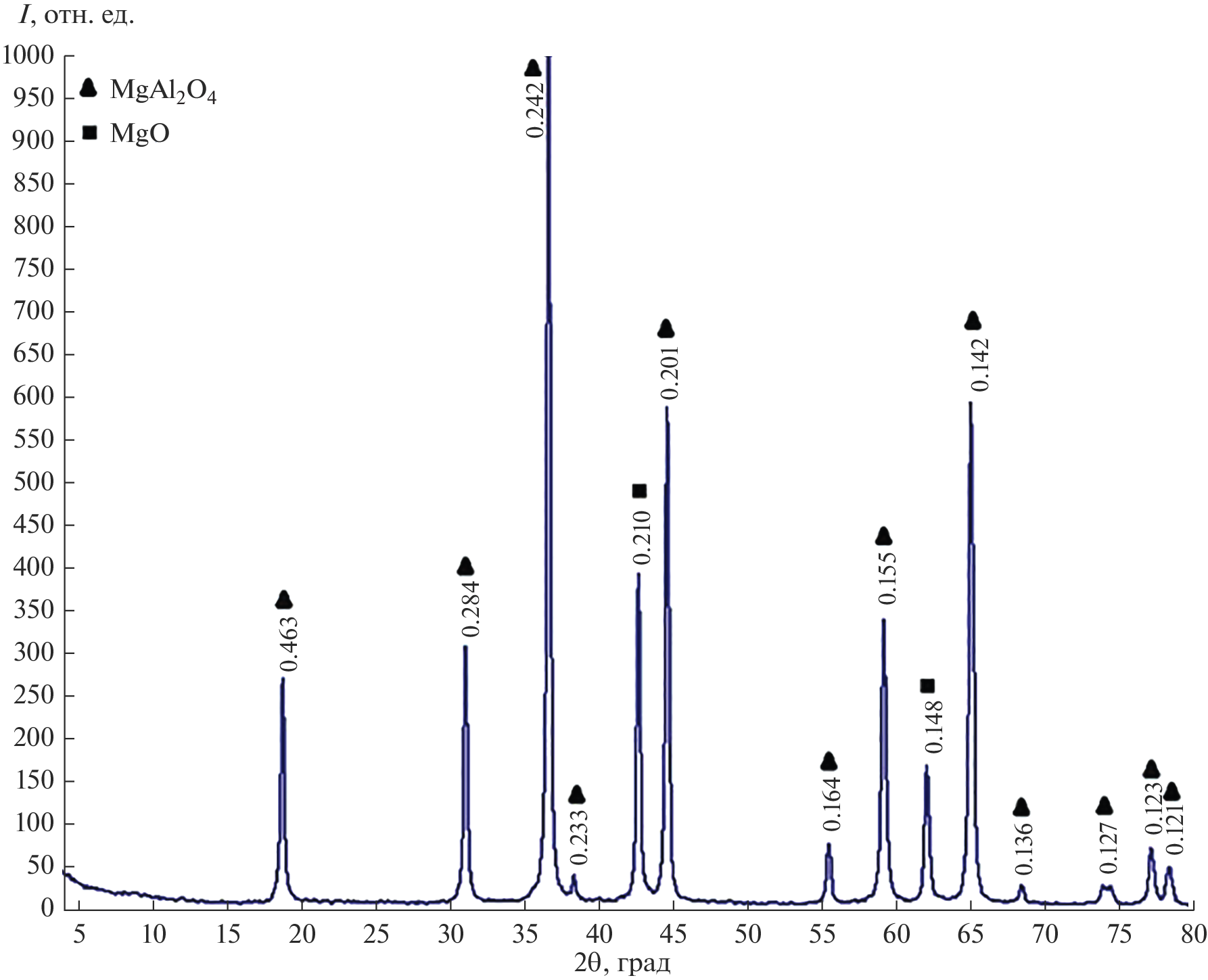 - Sanjabi S., Obeydavi A. Synthesis and Characterization of Nanocrystalline MgAl2O4 Spinel via Modified Sol–Gel-Method // J. Alloys Compd. 2015. V. 645. P. 535–541. https://doi.org/10.1016/j.jallcom.2015.05.107