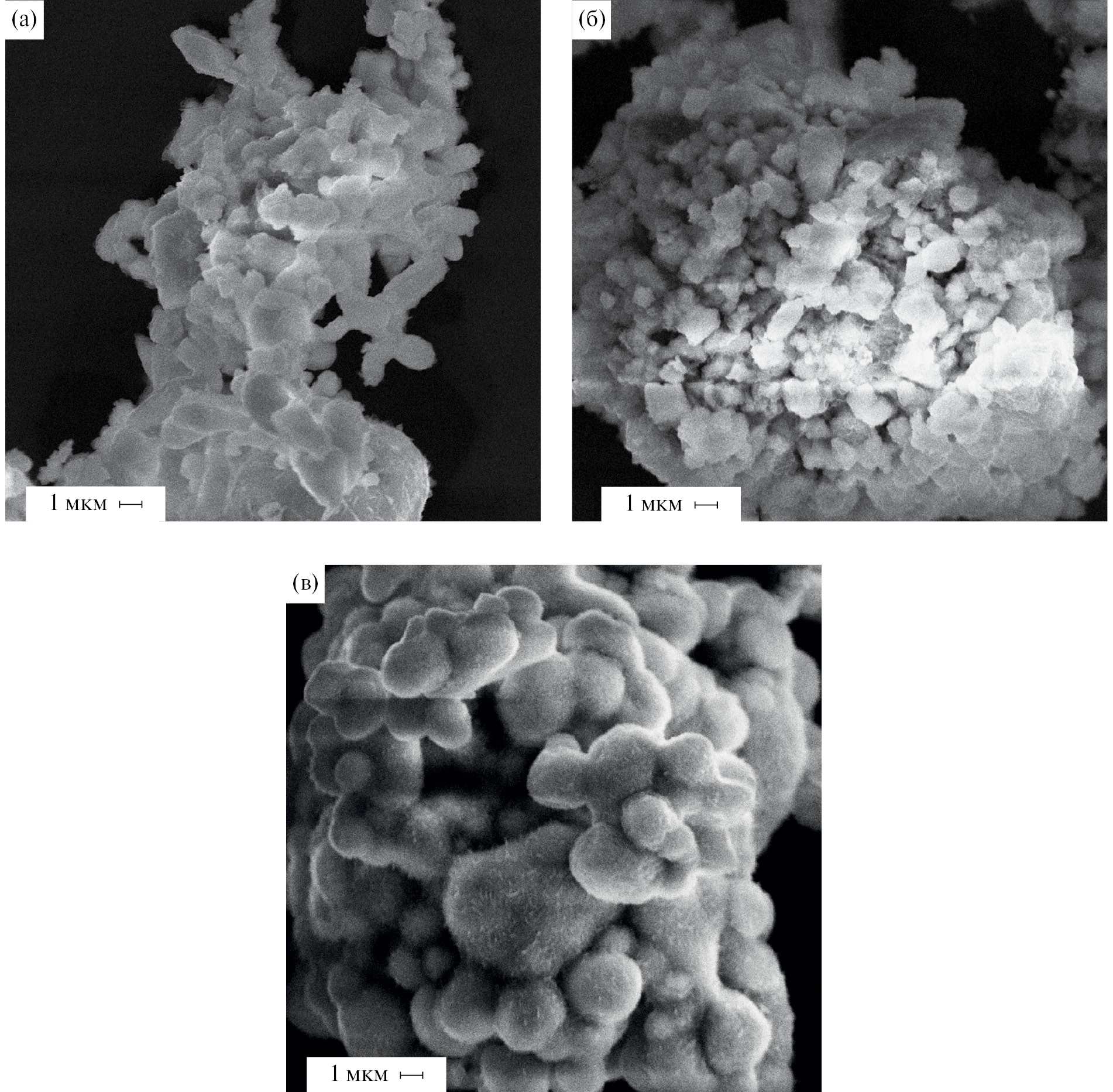 На рис. 3 представлена морфология порошков после 1-й стадии синтеза LLZ при 900 °С (а), после МА (б) и после МА с последующим спеканием (в). Порошки с субмикронным размером частиц после МА проявляли сильную тенденцию к агломерации [13].