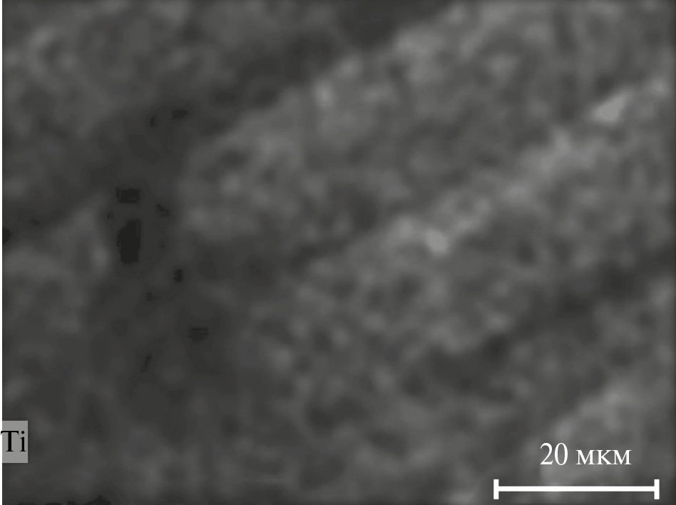 Рис. 1. Распределение Ti в покрытии, сформированном методом магнетронного напыления на ПЭТФ-ткани.
