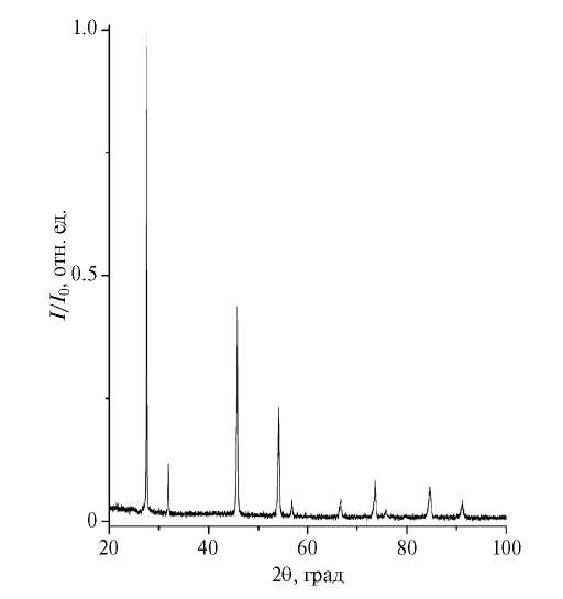 Рентгенофазовый анализ проводился на дифрактометре BrukerD8 Advance, излучение CuKα (рис.2). Спектр пропускания монокристалла снимался на спектрометре Carry-5000 (рис. 3).