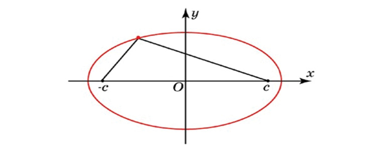 Рис. 2. Графическое изображение эллипса с фокусами F1(-c, 0) и F2(c, 0).