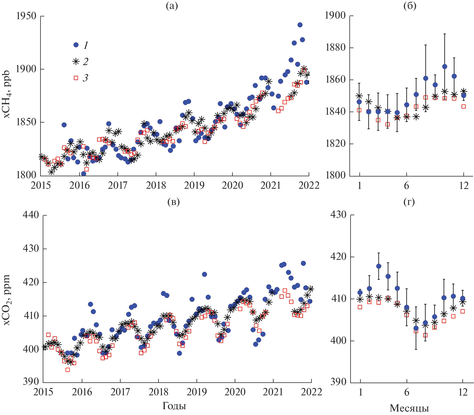- Baranov Yu.I., Baranova E.L., Bougrim G.I., Kashin F.V. Temporal variability of methane, carbon oxide and dioxide and dinitrogen oxide in surface air // Proc. SPIE. 2000. V. 4341. P. 438–442.