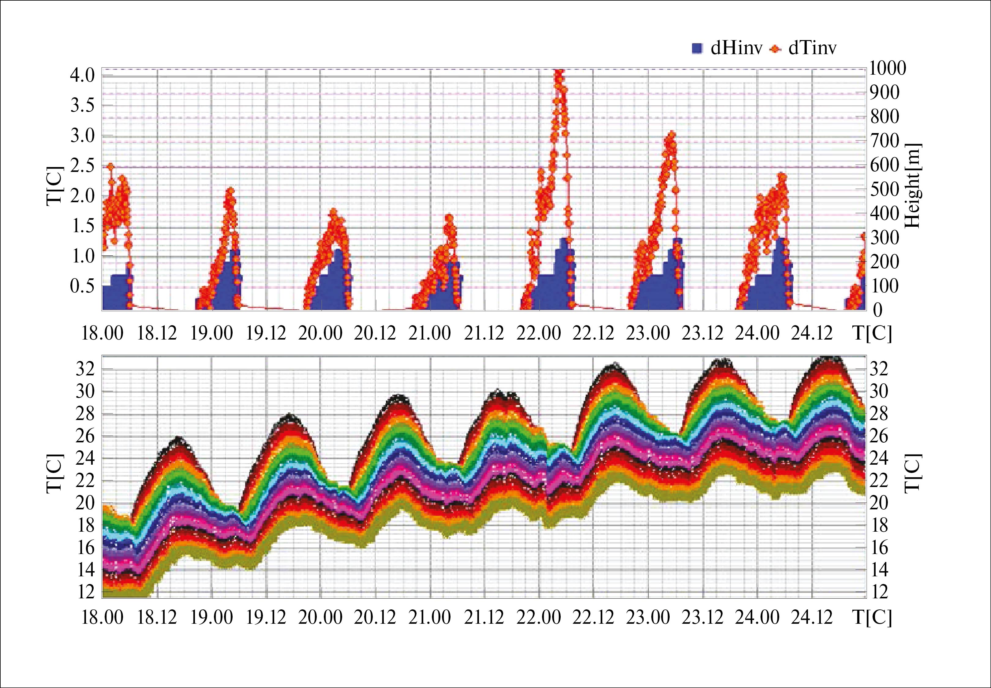 Рис. 9. Пример динамики температурных инверсий в ППС в период с 18/06 по 24/06 2021 г. (г. Долгопрудный).