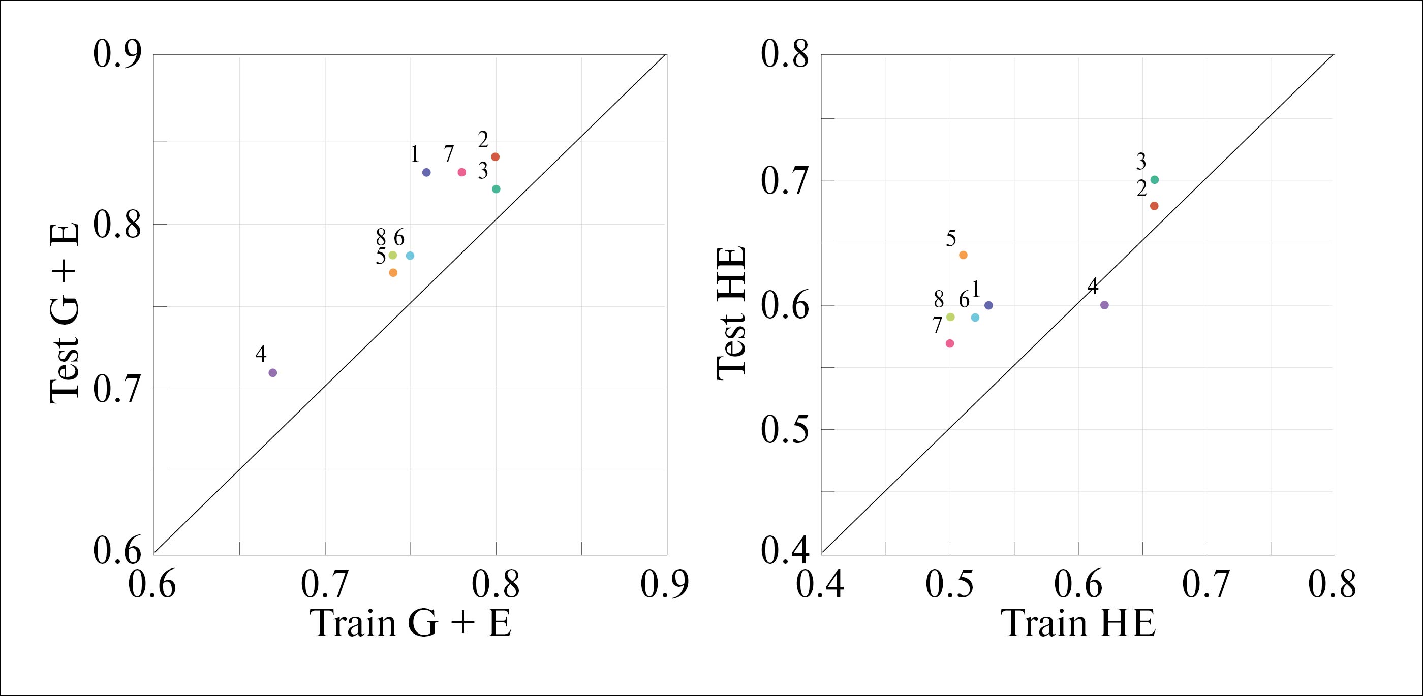 Для оценки глубины инверсии в случае двух типов (G + E) могут быть использованы наборы № 1 и № 7. В случае (HE) можно увидеть переоценку вариации параметра больше чем в два раза для любого набора. Однако, если выбирать из представленных результатов, то можно использовать наборы № 5 и № 7.