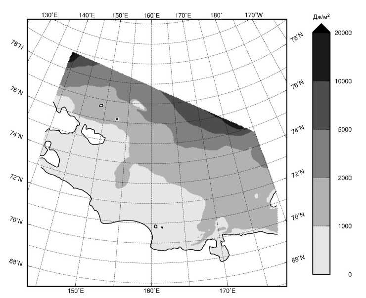 Представленные количественные оценки динамических и энергетических характеристик ВПВ в Восточно-Сибирском море вместе с такими же оценками для моря Лаптевых сведены в таблице. Они свидетельствуют о том, что их значения для рассматриваемых морей в большинстве случаев меньше в Восточно-Сибирском море, чем в море Лаптевых.