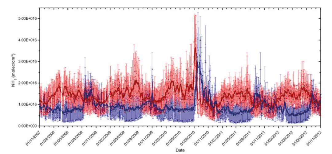 - Van Damme M., Clarisse L., Heald C.L., Hurtmans D., Ngadi Y., Clerbaux C., Dolman A.J., Erisman J.W., Coheur P.F. Global distributions, time series and error characterizationand trends of atmospheric ammonia (NH3) from IASI satellite observations // Atmos. Chem. Phys. 2014. V. 14. № 6. P. 2905–2922. www.atmos-chem-phys.net/14/2905/2014/