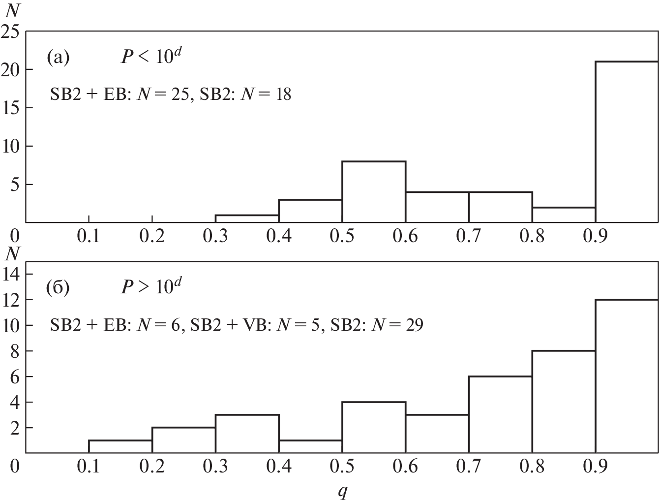 We collected the information about 83 pre-main sequence double-lined spectroscopic binaries. Among them there are Ae/Be Herbig stars, T Tauri stars and red dwarfs. The eccentricity – period relation, the mass ratio and eccentricity distributions of young spectroscopic binaries are constructed and analyzed. The overwhelming majority of close binaries with \(P < {{10}^{d}}\) have eccentricity near to zero, the stars less than 1 million years old are rare among them. The mass ratio distribution of systems with \(P < {{10}^{d}}\) has a prominent maximum in a range of \(q = 0.9{\kern 1pt} - {\kern 1pt} 1.0\). The number of young spectroscopic binaries with \(P > {{10}^{d}}\) does not decrease with decreasing mass ratio as sharply as in the case of close binary stars, about 12% of these stars have \(q < 0.5\). The paper is based on a talk presented at the astrophysical memorial seminar “Novelties in Understanding the Evolution of Binary Stars”, dedicated to the 90th anniversary of Professor M.A. Svechnikov.