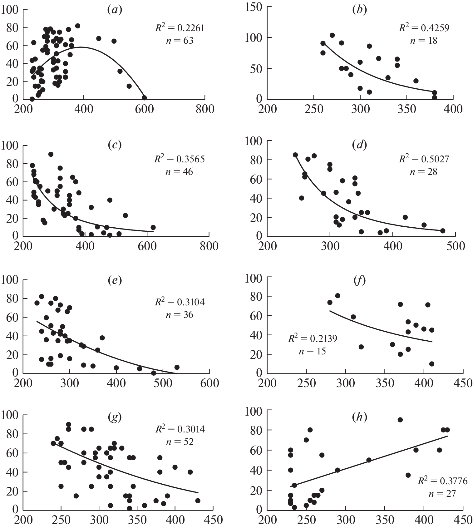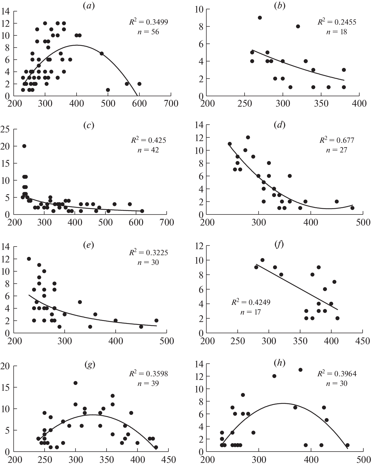 - Ipatov V.S., Kirikova L.A., Samoilov Y.I. 1974. Nekotorye metodicheskie aspekty postroeniya ekologicheskikh anplitud vidov. [Some methodological aspects of constructing ecological amplitudes of species]. – Ekologiya. 1: 13–23 (In Russ.).
