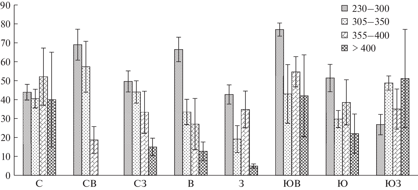 Based on geobotanical studies conducted in the summer of 1989 in the western part of the Chukchi Highlands, it was found that the number of moss species varies depending on the altitude, slope exposure and angle. Taking into account samples of different volumes for different parameters, the following dependencies were revealed: the largest number of species (35) was noted in the altutude range of 250–300 m, the smallest (14) – for the altutudes above 400 m; the slopes of the northern exposure are characterized by the largest number of species (22), the south-eastern and north-western ones – by the smallest number (18); a decreasing tendency in the number of species manifests itself with an increase in the slope angle: on gentle slopes (up to 5°) there are 37 species, while on steep ones (more than 25°) their number decreases to 23. Based on the position of the species optimum on the scale of soil moisture, 7 groups of species were distinguished: xerotopes, mesoxerotopes, xeromesotopes, mesotopes, hygromesotopes, mesohygrotopes, hygrotopes. The total percent cover value of mosses varies differently on the slopes of different exposures (on gravelly-fine-stony substrates): on the northern slopes it increases to an altitude of 400 m, then decreases sharply; on the south-western slopes it only increases to an altitude of 450 m, on all the other slopes it monotonously decreases from an altitude of 230–250 m to 370–600 m. At different altitude levels, the maximum of the total percent cover value of mosses is also related to the slope exposure: in the lower altitude range, it is confined to the south-eastern slopes, in the medium altitudes, it shifts to the north-eastern slopes, and in the uppermost range to the south-western ones. With an increase in the slope steepness, the total percent cover value of mosses decreases on the slopes of all exposures, with the greatest intensity being on the eastern slopes.