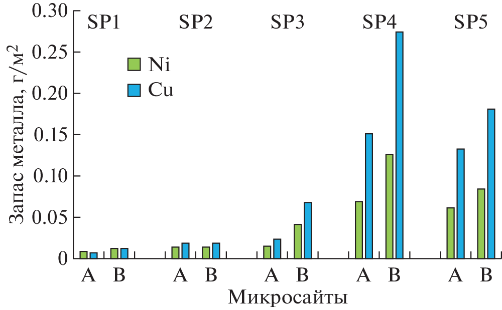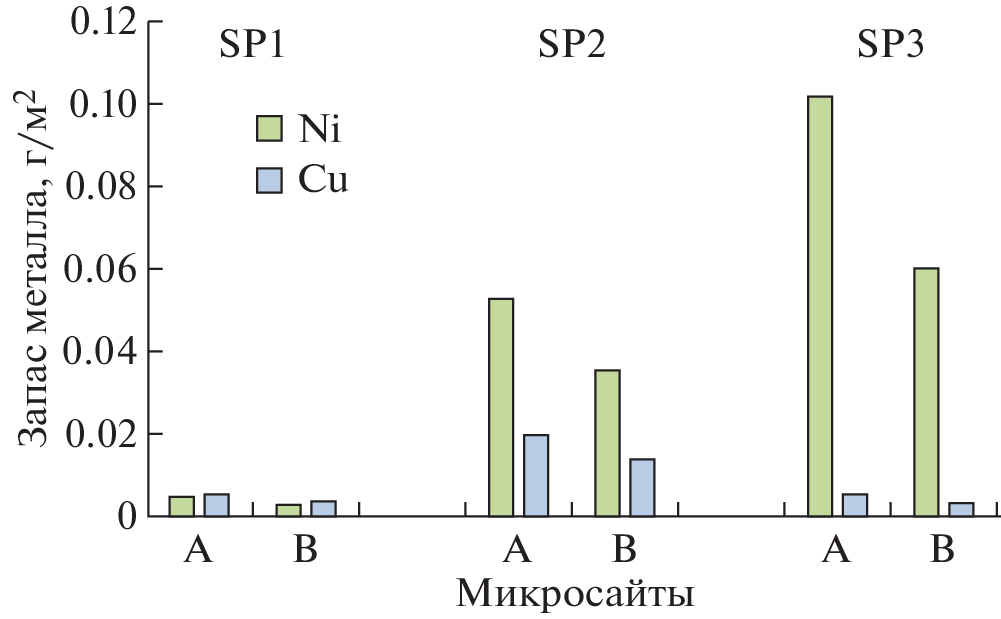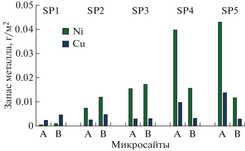 The paper presents the results of studying the distribution of stocks of potentially toxic elements (Ni, Cu) in subcrown spaces and “windows” of stands in medium-aged pine forests in the background area of the Kola Peninsula and that under environmental pollution by atmospheric emissions of the Severonickel Combine (Monchegorsk, Murmansk Region). On the basis of previously obtained data on the stocks of aboveground biomass of the components of the ground cover, mortmass of plant debris and forest litter and data of chemical analysis by means of atomic absorption spectrometry of leaves of dominant shrub species, aboveground parts of the moss Pleurozium schreberi (Brid.) Mitt, and lichen Cladonia stellaris (Opiz) Pouzar et Vězda, as well as plant waste and organogenic horizon (forest litter) of Al-Fe-humus podzols, Ni and Cu stocks in different components of forest ecosystems were calculated. It was found that the sharp decrease in atmospheric emissions by the Severonickel Combine over the last 20 years has not affected the level of habitat contamination, and the stock of heavy metals in the upper organogenic horizon of Al-Fe-humus podzols remains very high, especially in the impact zone, which does not even allow to start the process of restoration of the ground cover in this area. The stock of heavy metals in the plant waste consistently increases with the increase in the level of forest litter contamination when approaching the source of pollution, but the scale of this increase is significantly smaller in the mortmass compared to the litter. The pattern of distribution of heavy metal stocks in components of ground cover, plant waste and forest litter over the phytocenosis area is fundamentally different in background conditions and under aerotechnogenic pollution, which is due to differences in the accumulation of organic matter in different types of microsites. The ratio of Ni : Cu concentrations and stocks also differs in the soil-vegetation cover in pine forests of the background area and under the influence of aerotechnogenic pollution.