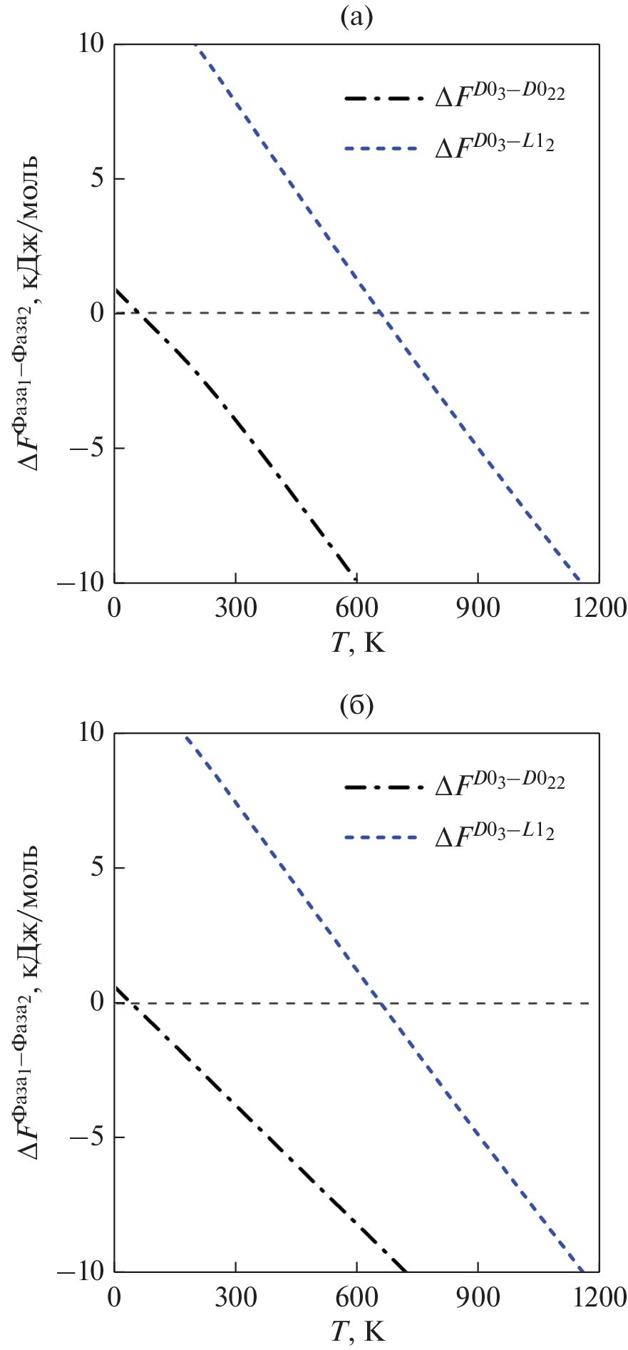 The effect of doping with Al on the stability of D03 and L12 phases was studied in the magnetostric-tion Fe–Ga and Fe–Ga–Al alloys with a high content of nonmagnetic atoms of ≈27 at %. For the studied D03 and L12 structures, the tetragonal shear modules C' = (C11 – C12)/2 and the Debye temperatures ΘD were found by the methods of density functional theory. The replacement of 4.58 at % of Ga by Al atoms was shown to lead to an increase in ΘD and a decrease in C′. Using the combined approach ab initio and Monte Carlo modeling, the calculations of free energies were performed, and the D03–L12 phase transition temperatures were determined. The Al addition to the Fe–Ga system was shown to decrease the difference between the energies of the D03 and L12 structures.