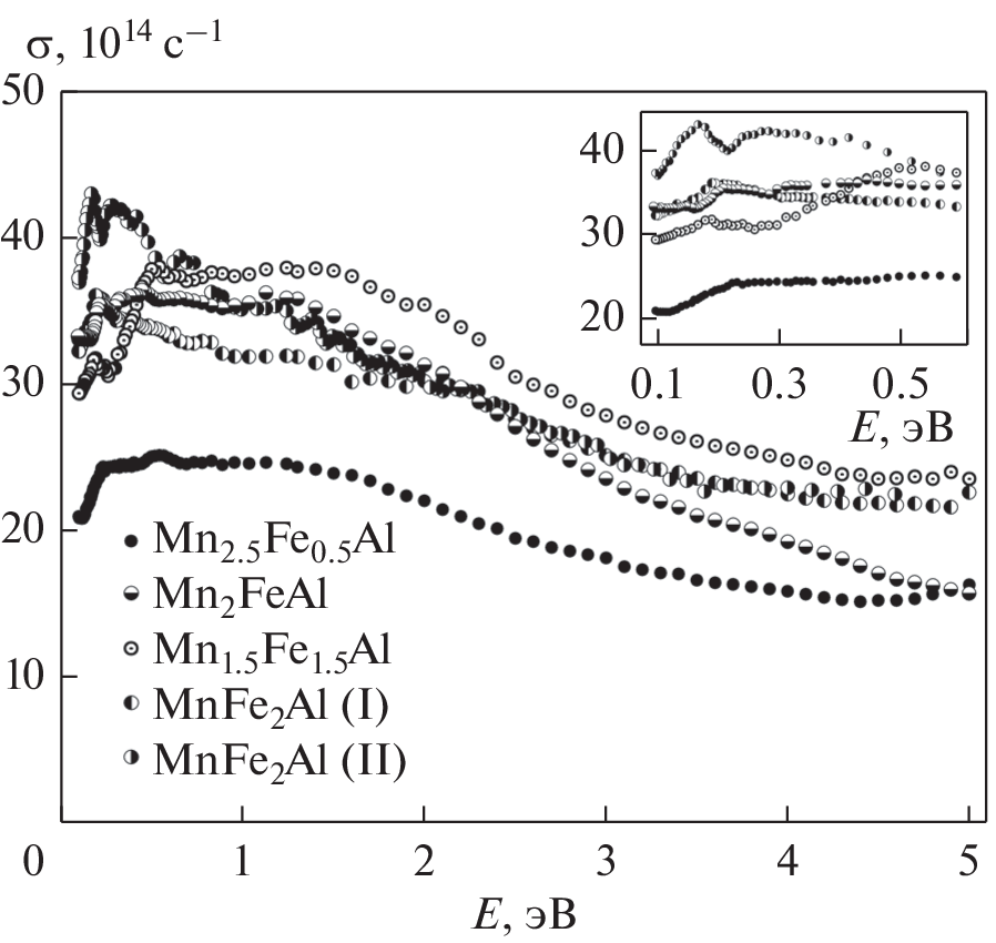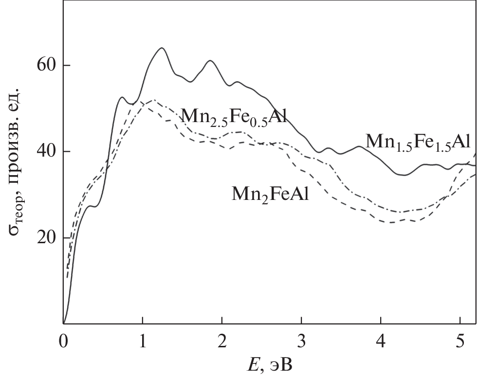and an experimental study of the optical properties of Heusler alloys Mn2 – xFe1 + xAl (x = –0.5, 0, 0.5, 1).