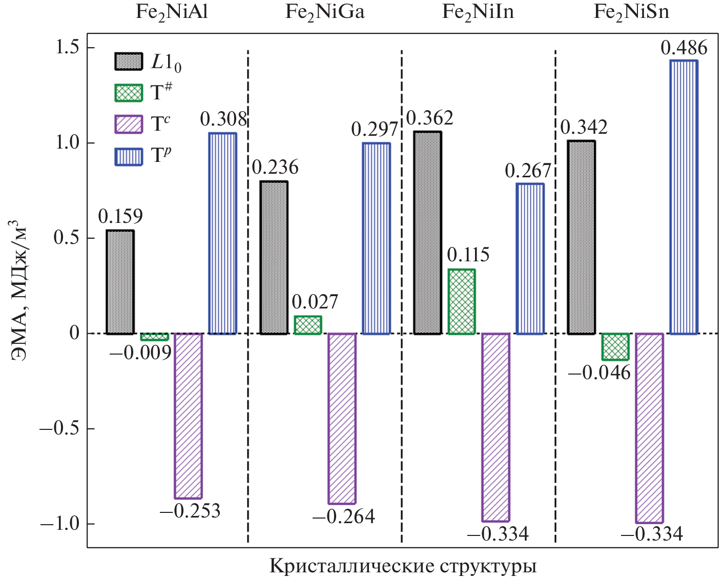 - Matsushita Y.I., Madjarova G., Dewhurst J.K., Shallcross S., Felser C., Sharma S., Gross E.K.U. Large magnetocrystalline anisotropy in tetragonally distorted Heuslers: a systematic study // J. Phys. D: Appl. Phys. 2017. V. 50. № 9. P. 095002.
