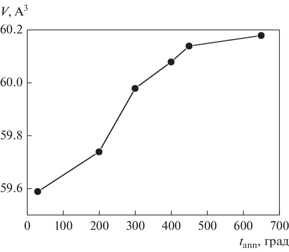 shown that at tann above 450°C, the process of oxygen leaving the lattice ends and only Fe3+ ions are detected.