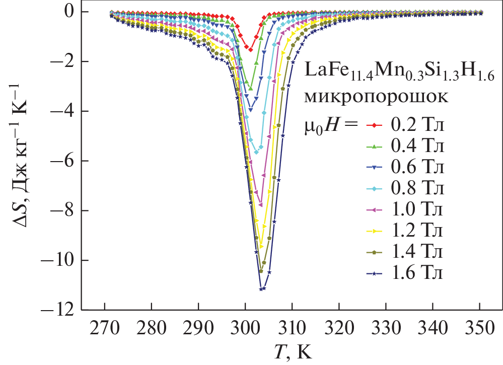 - Krautz M., Skokov K., Gottschall T., Teixeira C.S., Waske A., Liu J., Gutfleisch O. Systematic investigation of Mn substituted La(Fe,Si)13 alloys and their hydrides for room-temperature magnetocaloric application // J. Alloy. Comp. 2014. V. 598. P. 27–32.