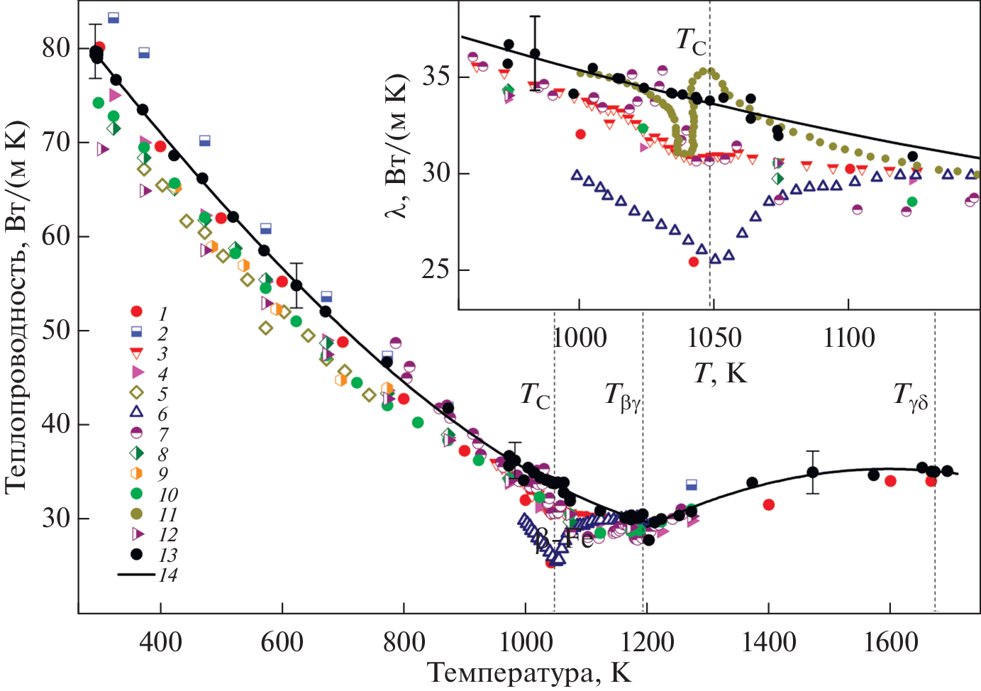 - Fulkerson W., Moore J.P., McElroy D.L. Comparison of the thermal conductivity, electrical resistivity and Seebeck coefficient of a high-purity iron and armco-iron to 1000°C // J. Appl. Phys. 1966. V. 37. № 7. P. 2639–2653.