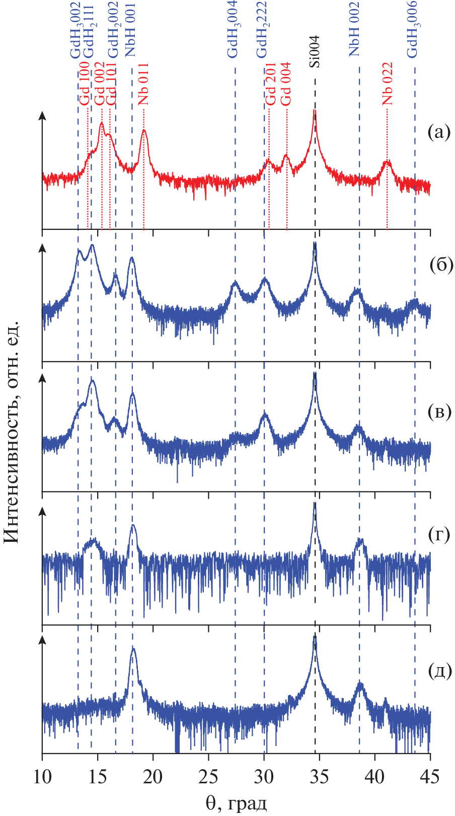 Structural studies of multilayer magnetic nanostructures formed by alternating layers of transition (Fe) and rare earth (Gd) metals placed in a hydrogen atmosphere at a temperature of 100°C have been carried out. When hydrogen is absorbed by rare earth metals, crystalline phases GdHx arise (form), the microstructural features of which were studied by X-ray diagnostics and electron microscopy.