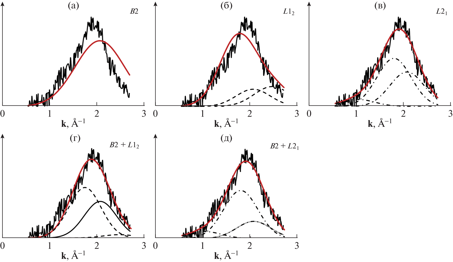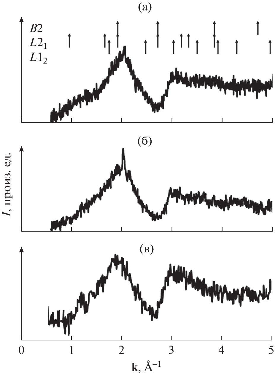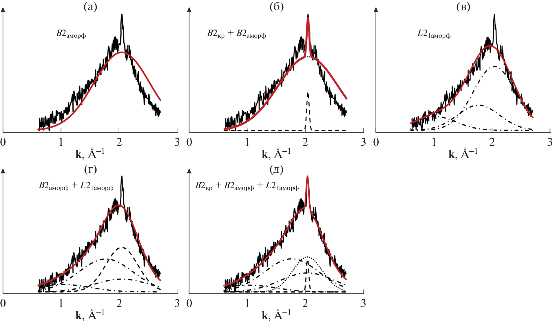 —The results of a comparative analysis of the structure of Ti2NiCu alloy subjected to severe plastic deformation by high pressure torsion (HPT) and subsequent annealing are presented. The study of the structure was carried out by diffractometry of electron, X-rays and neutrons, transmission electron microscopy. It is established that an amorphous-crystalline state is formed in the alloy: nanocrystallites with a B2 lattice are present in the amorphous matrix. The analysis of diffuse maxima showed that the topological and compositional near atomic order of nanodomains with a superstructure ordered by type B2 and L21 is present in the Ti2NiCu alloy after HTP on 5 rev.