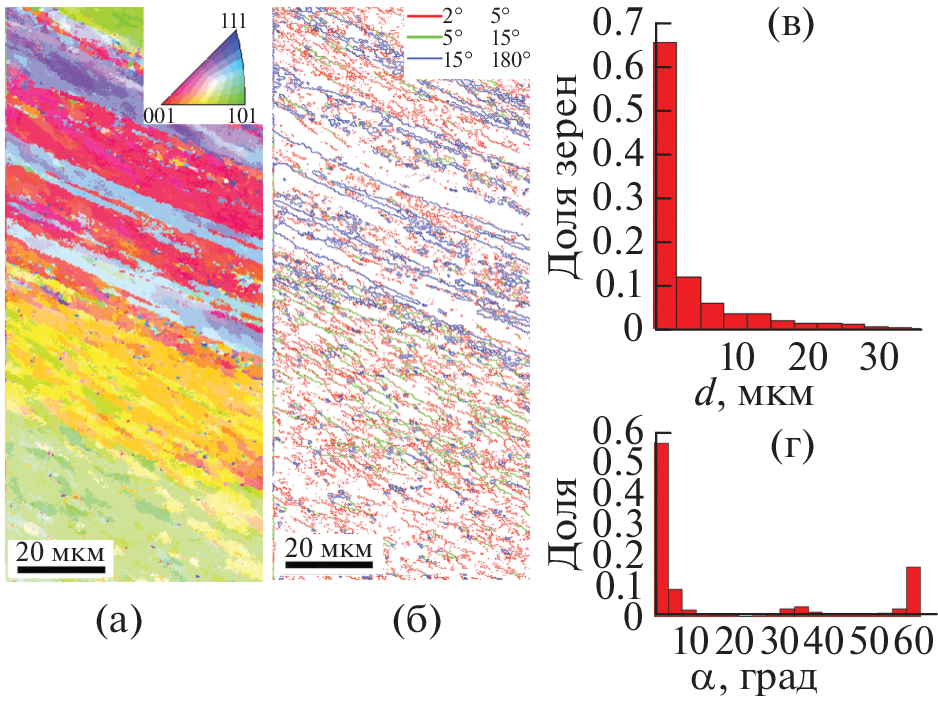 The mechanical properties of alloys Cu–0.03 wt % Zr and Cu–0.10 wt % Cr with a submicrocrystalline structure formed during dynamic channel-angular pressing and subsequent annealing. The properties of the alloys were studied under shock compression conditions with a pressure of 4.7–7.0 GPa and a deformation rate of (1.3–3.2) × 105 s–1. It is shown that grain grinding from 200–400 to 0.3–1.0 microns increases the dynamic elastic limit and the dynamic yield strength of the Cu–0.03% Zr alloy by 1.9 and 1.8 times, respectively, but reduces the shear strength by 1.4 times. Subsequent annealing at 400 and 450°C can increase the characteristics of the elastic-plastic transition by 3.0 and 3.7 times, respectively, and increase the shear strength to the level of a large-crystal analog. It is determined that the dispersion of the Cu–0.10% Cr alloy structure to 1.0–5.0 microns increases not only the dynamic elastic limit and dynamic yield strength by 3.7 and 2.6 times, respectively, and the shear strength by 1.5 times, compared with its value in the coarse-grained state.