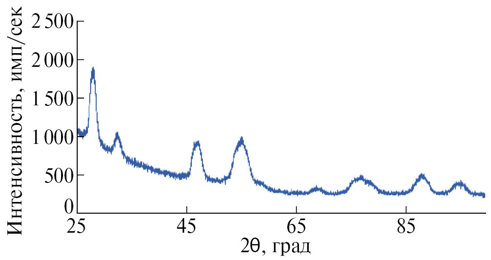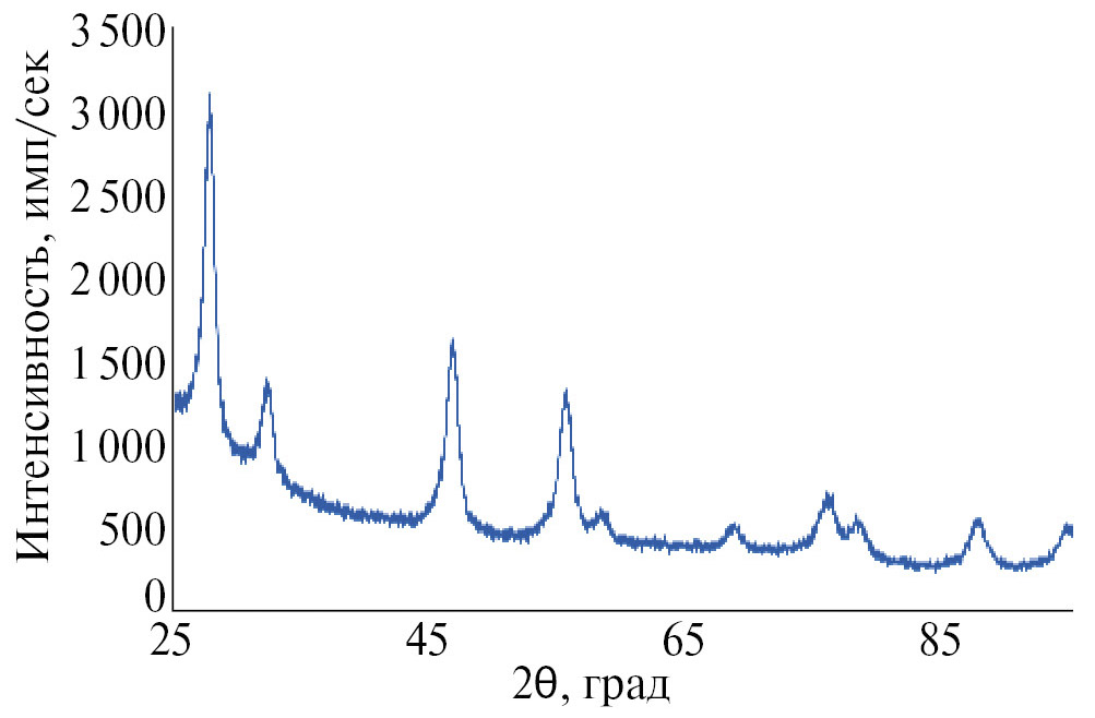 Рис. 8. Дифрактограмма НЧ СеО₂, полученных в присутствии этанола.