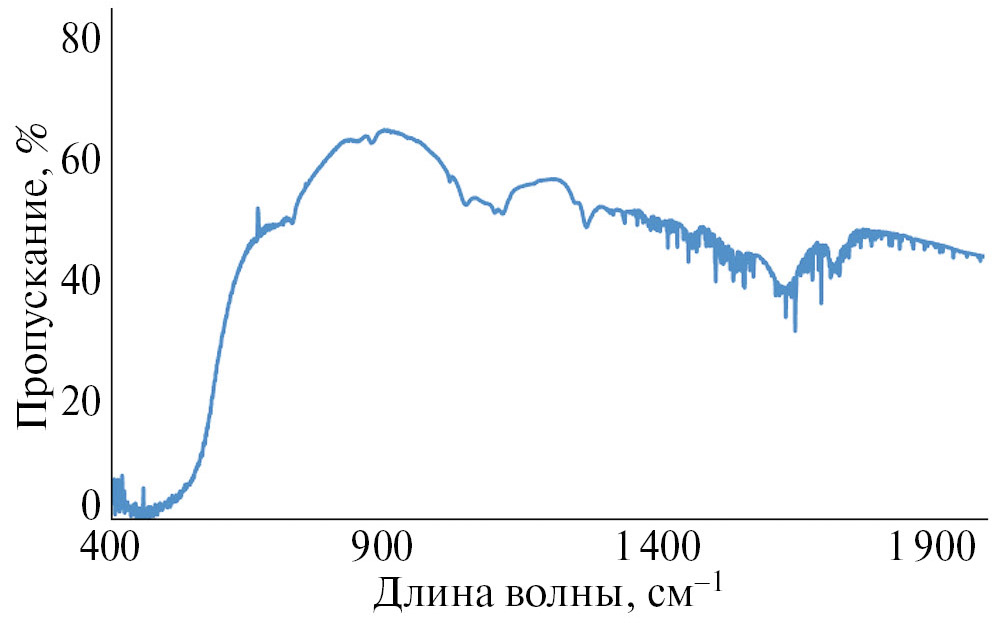 Рис. 3. Данные инфракрасной спектроскопии для НЧ СеО₂, полученных одновременным впрыском реагентов и последующей сушкой при 120 °С (iii-120).