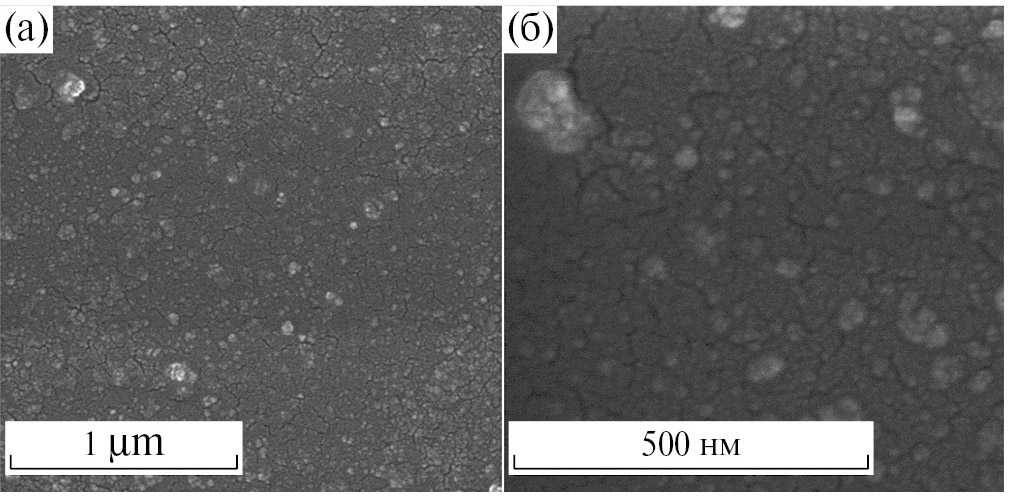 Для изучения влияния среды на процесс осаждения НЧ СеО₂ водная среда была частично заменена на менее полярный растворитель – этанол. Нитрат церия (1 грамм) растворяли в 17 мл деионизированной воды. При постоянном перемешивании добавляли 7 мл этанола, после чего раствор доводили до рН 8 раствором аммиака и перемешивали еще 4 ч при комнатной температуре. Полученный серый коллоид осаждали центрифугированием при 5000 об/мин в течение 2 мин, процедуру повторяли два раза. Осадок просушивали потоком воздуха в течение 16 ч до формирования светло-желтого вещества. Значение ζ-потенциала НЧ СеО₂, полученных в присутствии этанола, составило –37 мВ; гидродинамический диаметр составил 60 нм (75%) и 2529 нм (25%) с PI 1.12, что говорит о неоднородном распределении НЧ по размеру. Относительно маленький размер НЧ подтверждают СЭМ-исследования ~ 100 нм (рис. 7).