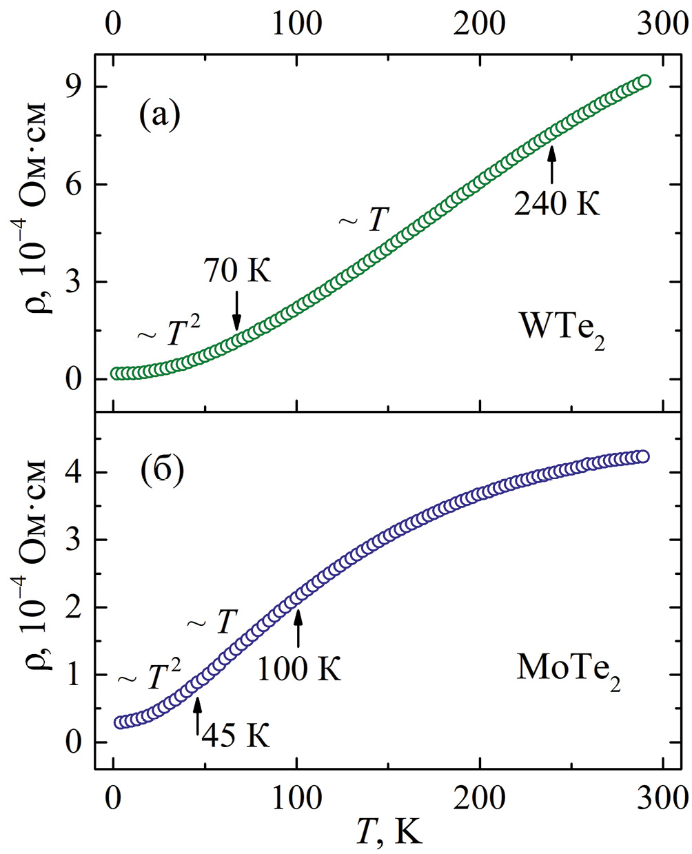 3.1. Температурные зависимости электросопротивления WTe2 и MoTe2