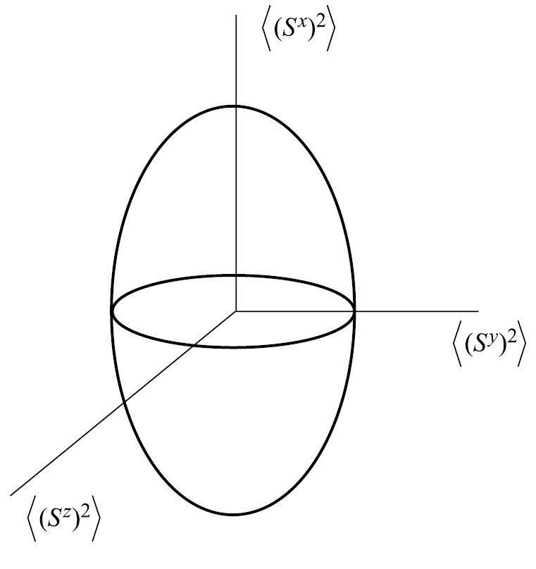 Включение внешнего поля приводит к тому, что геометрическим образом данного состояния в спиновом пространстве становится двухосный эллипсоид (рис. 3) с осями: