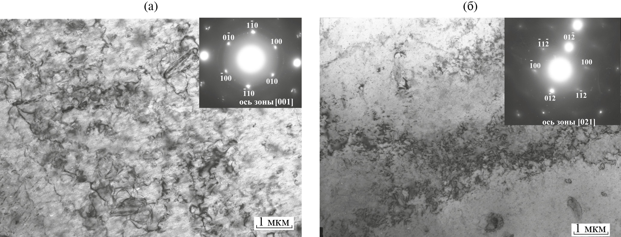 Структурные исследования проводили с помощью просвечивающего электронного микроскопа JEM 200CX при ускоряющем напряжении 160 кВ. Тонкие фольги для просвечивающей электронной микроскопии (ПЭМ) получали методом струйной полировки на установке TenuPol-5. Состав электролита: 20% HСlO4 + 80% CH3CO2H.