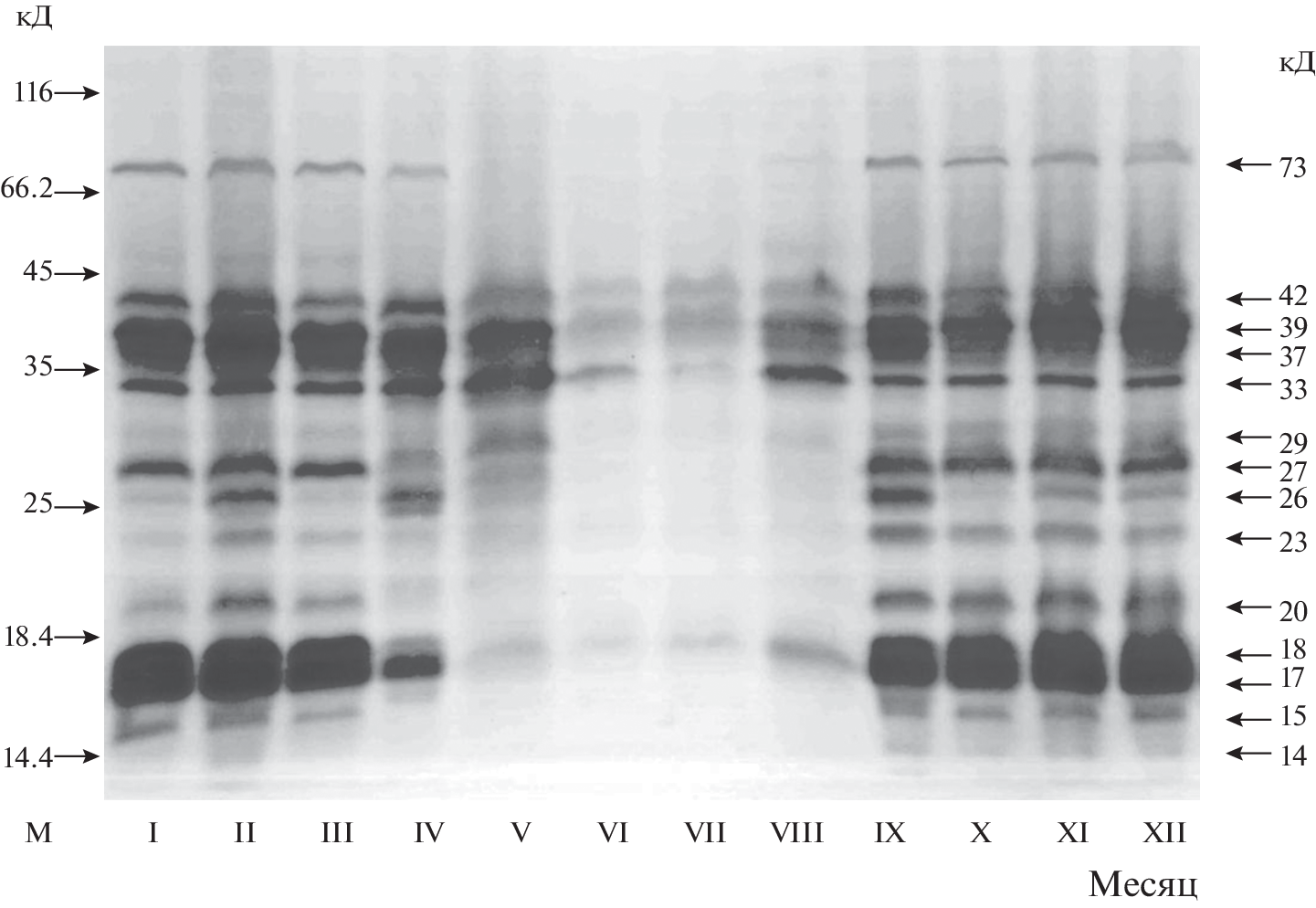 - Tatarinova T.D., Perk A.A., Bubyakina V.V., Vasilieva I.V., Ponomarev A.G., Maximov T.C. Dehydrin stress proteins in Pinus sylvestris L. needles under conditions of extreme climate of Yakutia // Dokl. Biochem. Biophys. 2017. V. 473. P. 98. https://doi.org/10.7868/S0869565217080242