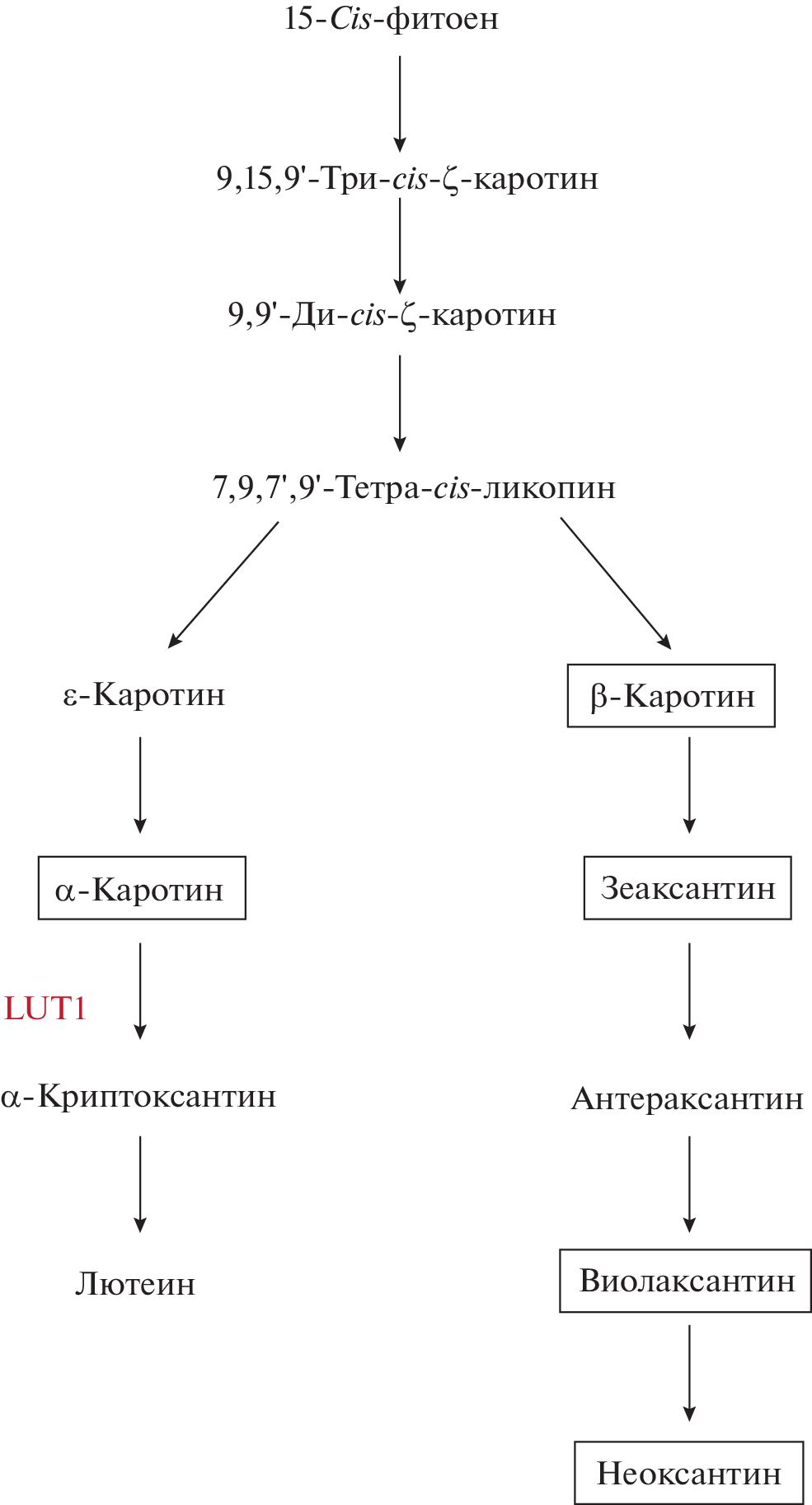 - Tian L., Della Penna D. Progress in understanding the origin and functions of carotenoid hydroxylases in plants LUT1 // Arch Biochem. Biophys. 2004. V. 430. P. 22. https://doi.org/10.1016/j.abb.2004.02.003