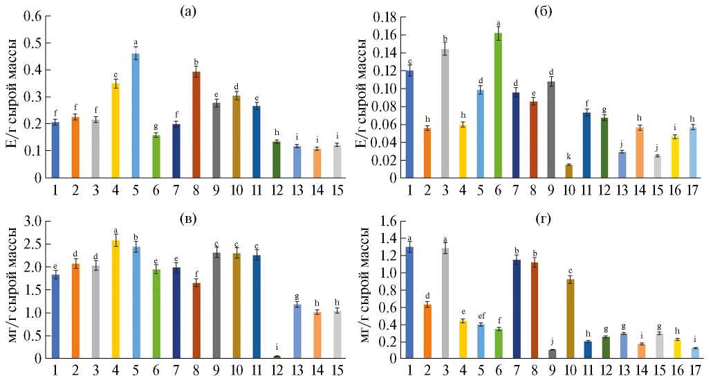 где А665 и А649 – оптическая плотность раствора при длинах волн 665 и 649 нм соответственно. Содержание хлорофиллов а и b выражали в мкг/г сырой массы.