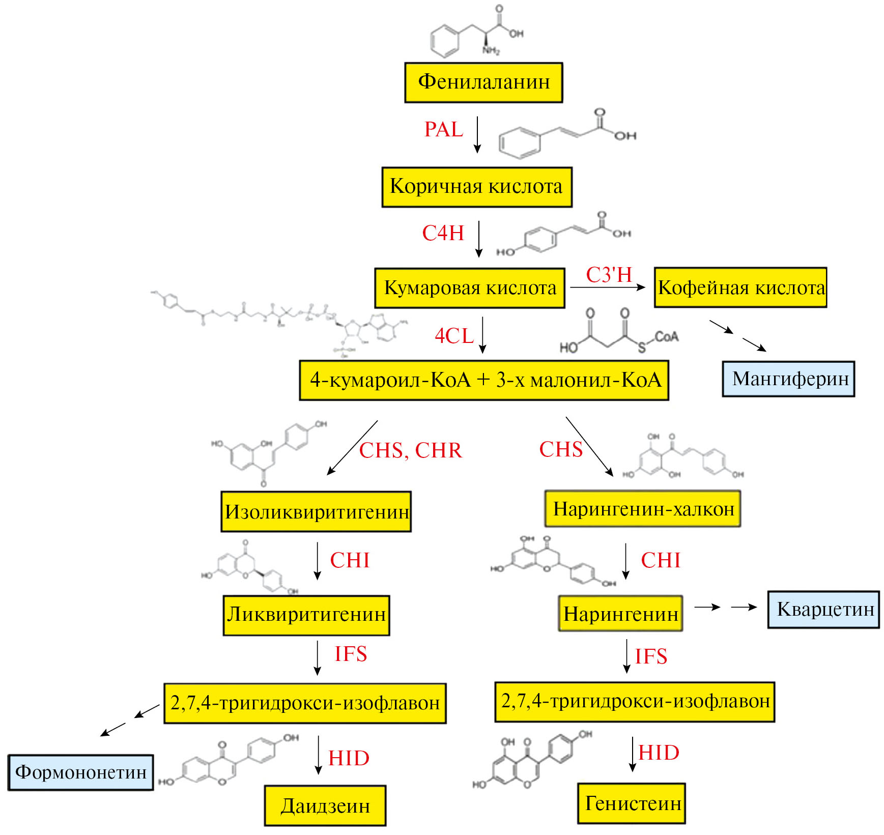- Sohn S.I., Pandian S., Oh Y.J., Kang H.J., Cho W.S., Cho Y.S. Metabolic engineering of isoflavones: an updated overview // Front. Plant Sci. 2021. V. 12. P. 670103. https://doi.org/10.3389/fpls.2021.670103
