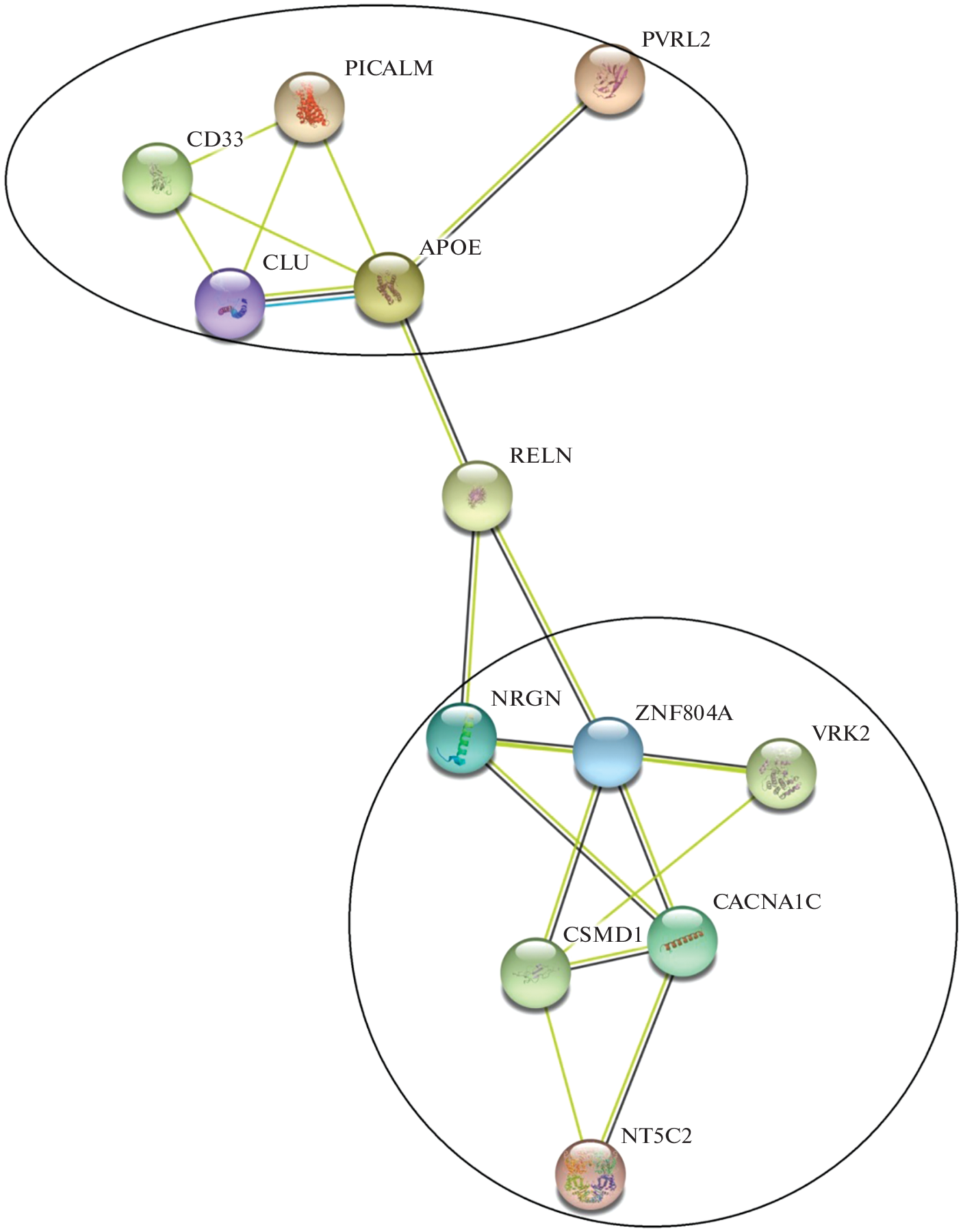 Расстройства неврологического и психического спектра, такие как шизофрения, болезнь Альцгеймера, биполярное расстройство, болезнь Паркинсона, представляют собой сложно наследуемые многофакторные заболевания человека с нарушениями когнитивных функций и являются социально значимыми патологиями, представляющими серьезную проблему для мирового здравоохранения. Данные заболевания отличаются многоуровневым характером реализации генетической информации, и в формировании окончательного фенотипа принимает участие целый ряд совместно действующих генов. В связи с этим для понимания молекулярных механизмов, лежащих в основе изучаемой патологии, следует применить анализ биологических сетей, направленный на выявление взаимодействующих генов, продукты которых приводят к развитию заболевания. В настоящем исследовании для реализации такого подхода в отношении фенотипов с нарушениями когнитивных функций человека были использованы различные онлайн-ресурсы и базы данных: WebGestalt, GeneOnto-logy, STRING. С помощью биоинформатических инструментов была получена сеть белок-белковых взаимодействий, где выделяются две подсети, одна из которых участвует в риске развития шизофрении, а другая – в риске развития болезни Альцгеймера.