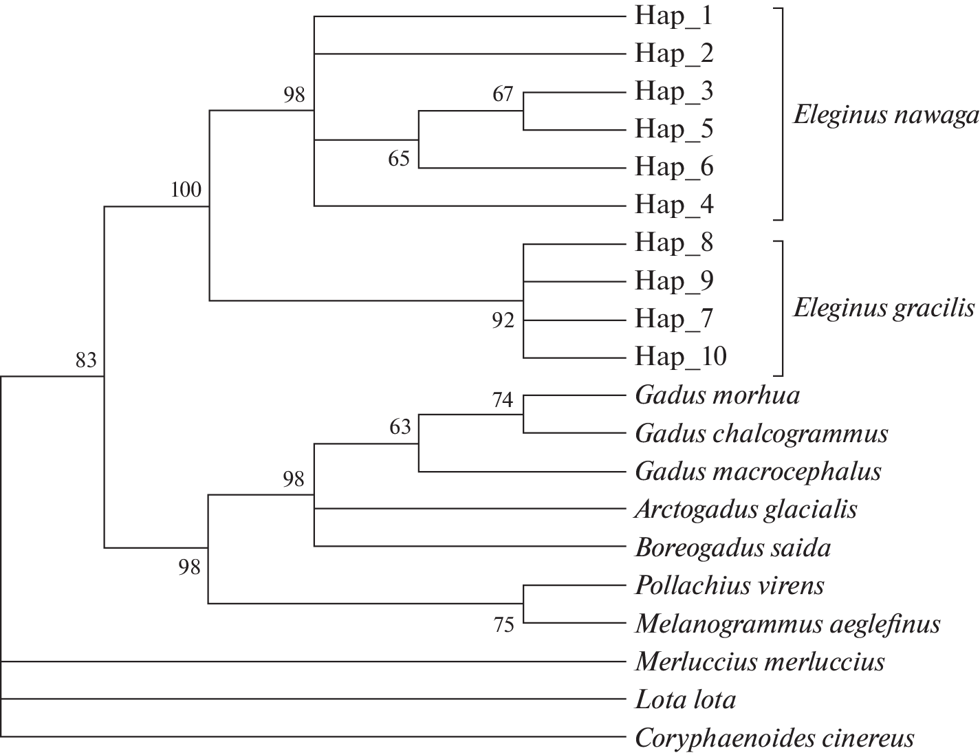 Phylogeny of the Genus Eleginus (Gadidae) according to the Analysis of the Variability of Microsatellite Locus and mtDNA CO1 Fragment