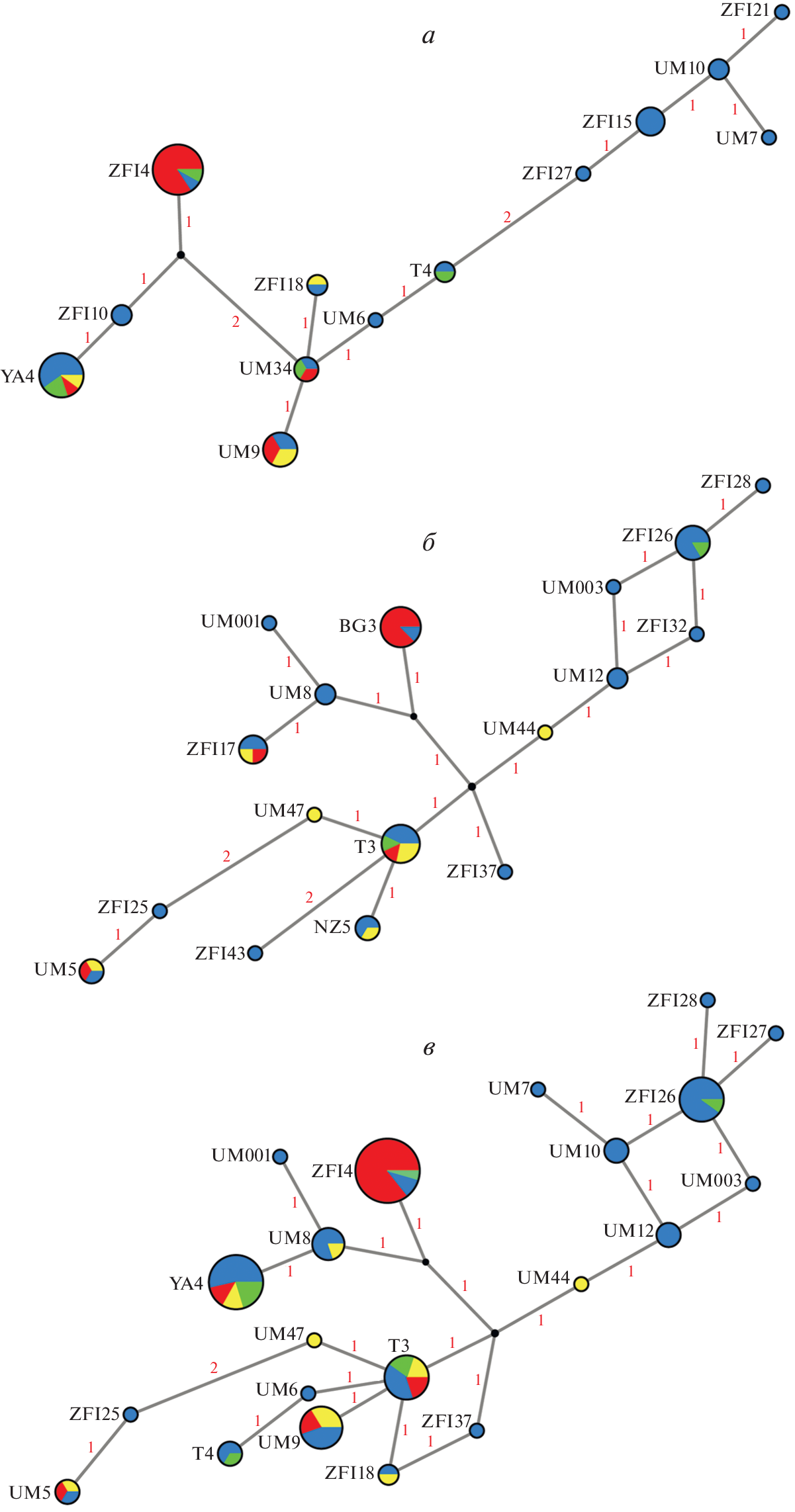 - Bandelt H.J., Forster P., Rohl A. Median-Joining networks for inferring intraspecific phylogenies // Mol. Biol. Evol. 1999. V. 16. № 1. P. 37–48. https://doi.org/10.1093/oxfordjournals.molbev.a026036
