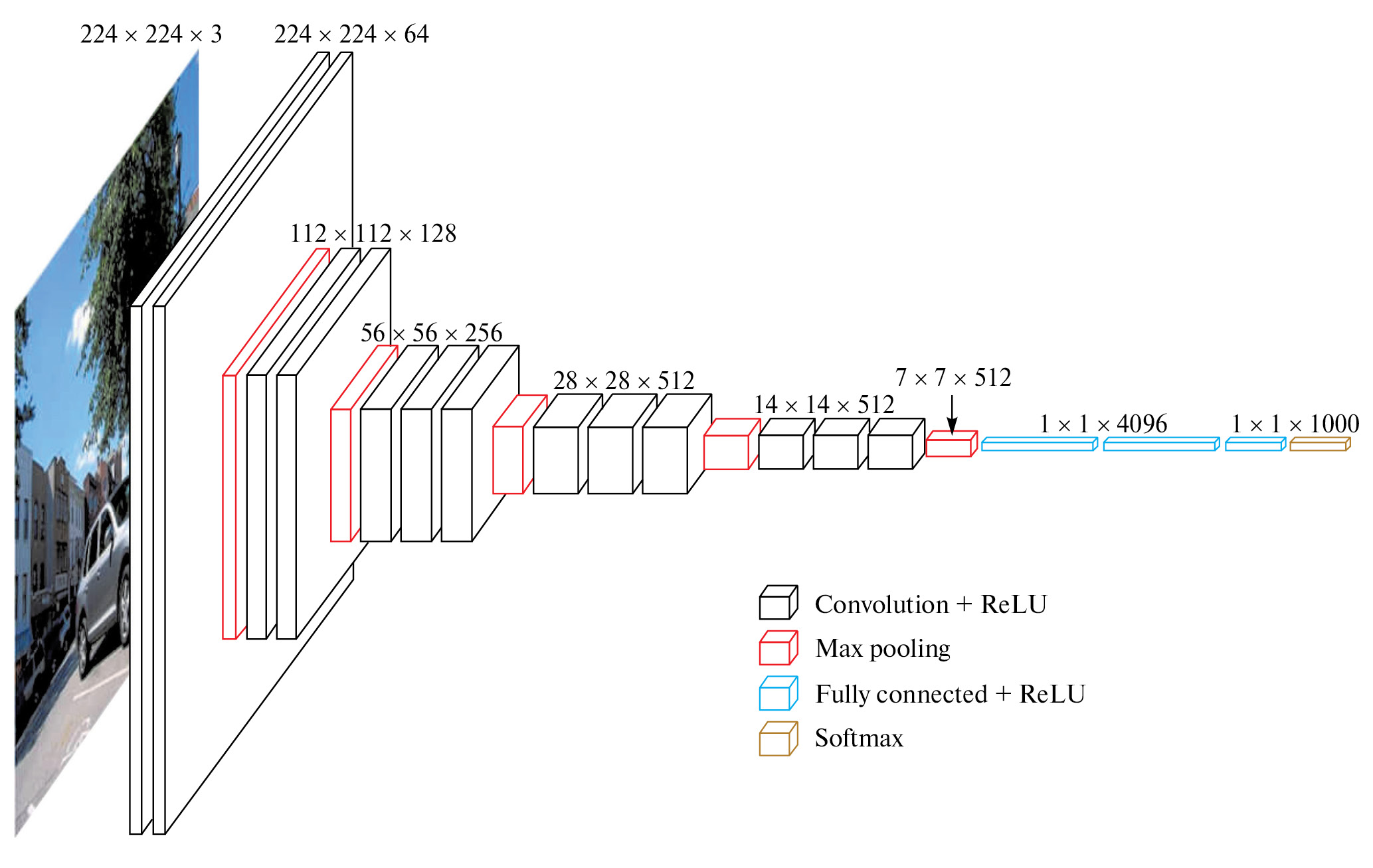 - Simonyan K., Zisserman A. Very deep convolutional networks for large-scale image recognition // arXiv preprint arXiv:1409.1556. 2014. doi: 10.48550/arXiv.1409.1556