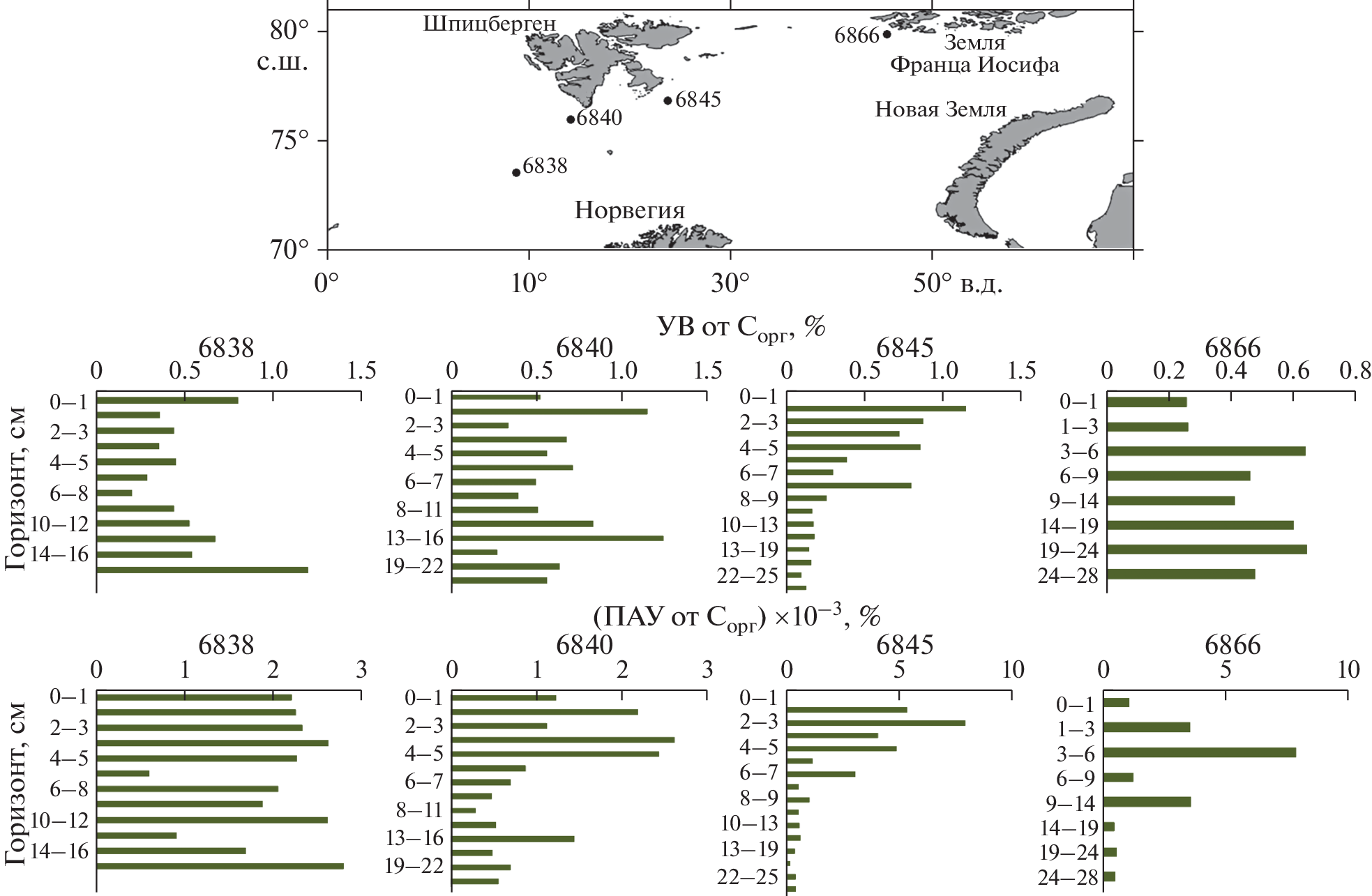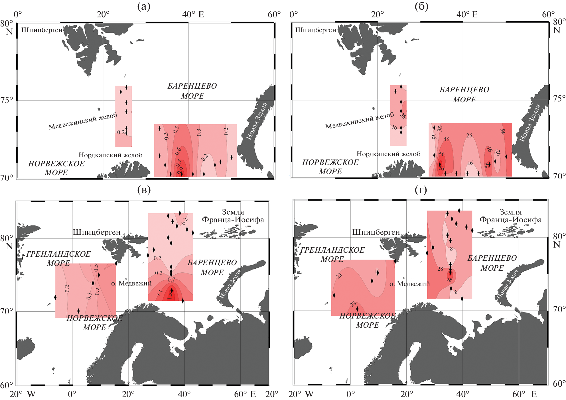 - Глязнецова, Ю.С., Немировская И.А. (2020). Особенности распределения битумоидов в донных осадках Баренцева моря. Океанология. 60(6), 831-839