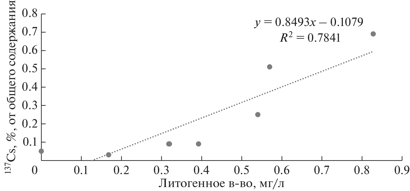 Sedimentation transport of 137Cs can lead to the significant accumulation of this radionuclide at depths that could not be reached through the vertical water exchange alone; therefore, a comparative assessment of its contents for different types of suspended matter (SM) and regions of the Black Sea is of particular interest. For this purpose, we have collected samples of SM and seawater at deep-water and coastal stations for the subsequent determination of the 137Cs activity in the surface water layer. To calculate the fraction of lithogenic matter, the potassium content in the SM was additionally determined. The range of 137Cs content on SM at different stations differed by more than an order of magnitude: from 7 to 111 Bq/kg for specific activity, and from 0.03 to 0.69% for its content on SM, in % of the total content in the surface water layer. Stations located farther away from the coast were characterized by the lowest percentage of 137Cs in SM, while its content at the coastal stations was more variable. The comparison of the lithogenic and biogenic contribution to SM and data on 137Cs for different stations suggests that the content of this radionuclide on SM is primarily determined by the dynamic variations of the lithogenic matter. Based on the 137Cs migration on SM, the Black Sea is divided into at least two types of regions. One regions are water areas far removed from sources of lithogenic matter where SM is formed mainly due to the hydrobiont activity. The 137Cs content in SM due to the predominance of biogenic matter and an insignificant concentration of lithogenic matter in this case accounts for hundredths of a percent of its total content in the surface water layer. Other regions are coastal and shelf water basins, which, on the one hand, are subjected to the significant coastal and river lithogenic runoff, and on the other, they are characterized by the elevated trophicity and biological productivity. In these water areas, 137Cs content on SM owing to the variability of biotic and abiotic factors is more variable and can fluctuate from values typical for the open sea to an order of magnitude higher.