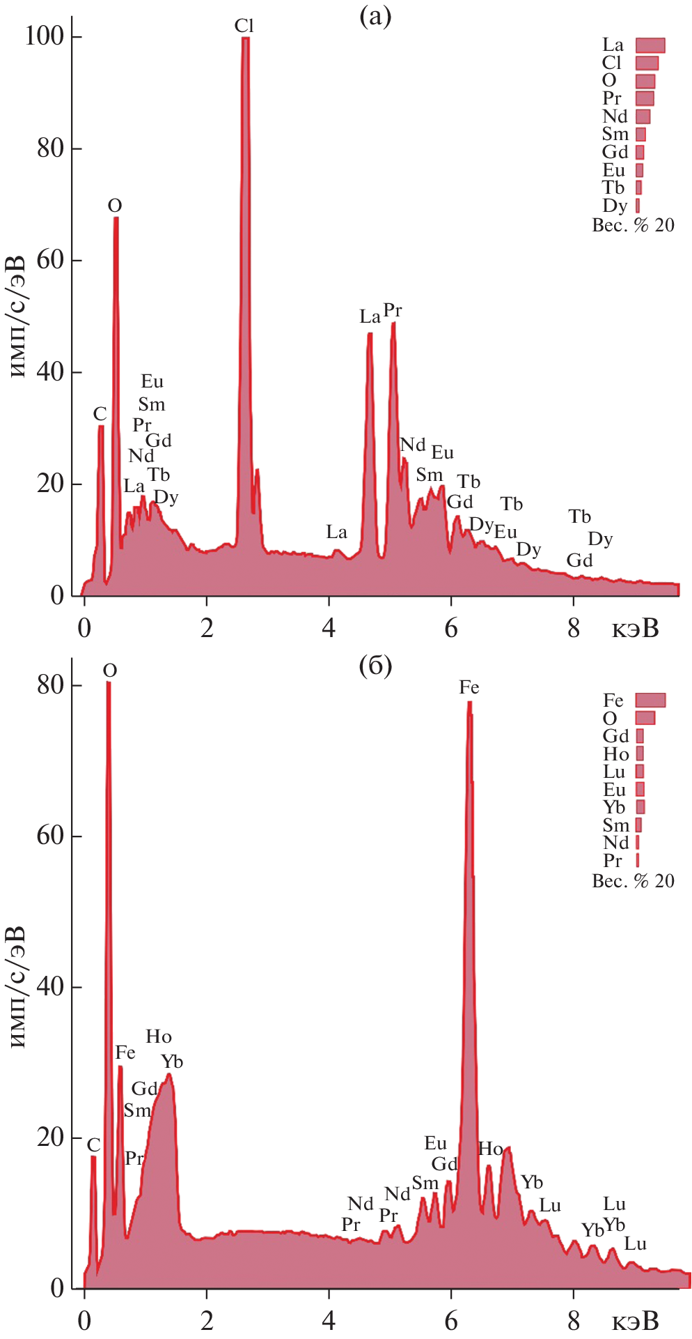 The initial results of the experimental study of a hydrothermal system including lanthanides (Ln) and Fe oxides (magnetite and hematite) are presented. Ln concentrations in solutions and crystals were determined by ICP-MS and LM-ICP-MS, accordingly. The Ln distribution and cocrystallization coefficients obtained are interpreted as the maximal estimates of “true” values corresponding to structurally bound admixture. It is shown that Ln (except for Eu) are the compatible elements in hydrothermal magnetite; heavy Ln (beginning with Tb) are compatible in hematite. The pronounced tendency of the elevation of both coefficients with the Ln atomic number beginning from Gd-Tb was established. This is significant for using the ratio of light and heavy Ln as a typochemical guide for localization of the source of ore elements. The high-Ln-containing phases in associations with magnetite and hematite were obtained. These phases have oxychloride (without Fe) and oxyhydroxide (with Fe) composition and demonstrate the example of co-locating light and heavy Ln in the common space of hydrothermal system due to mutual crystallization of the phases selectively accumulating light and heavy lanthanides.
