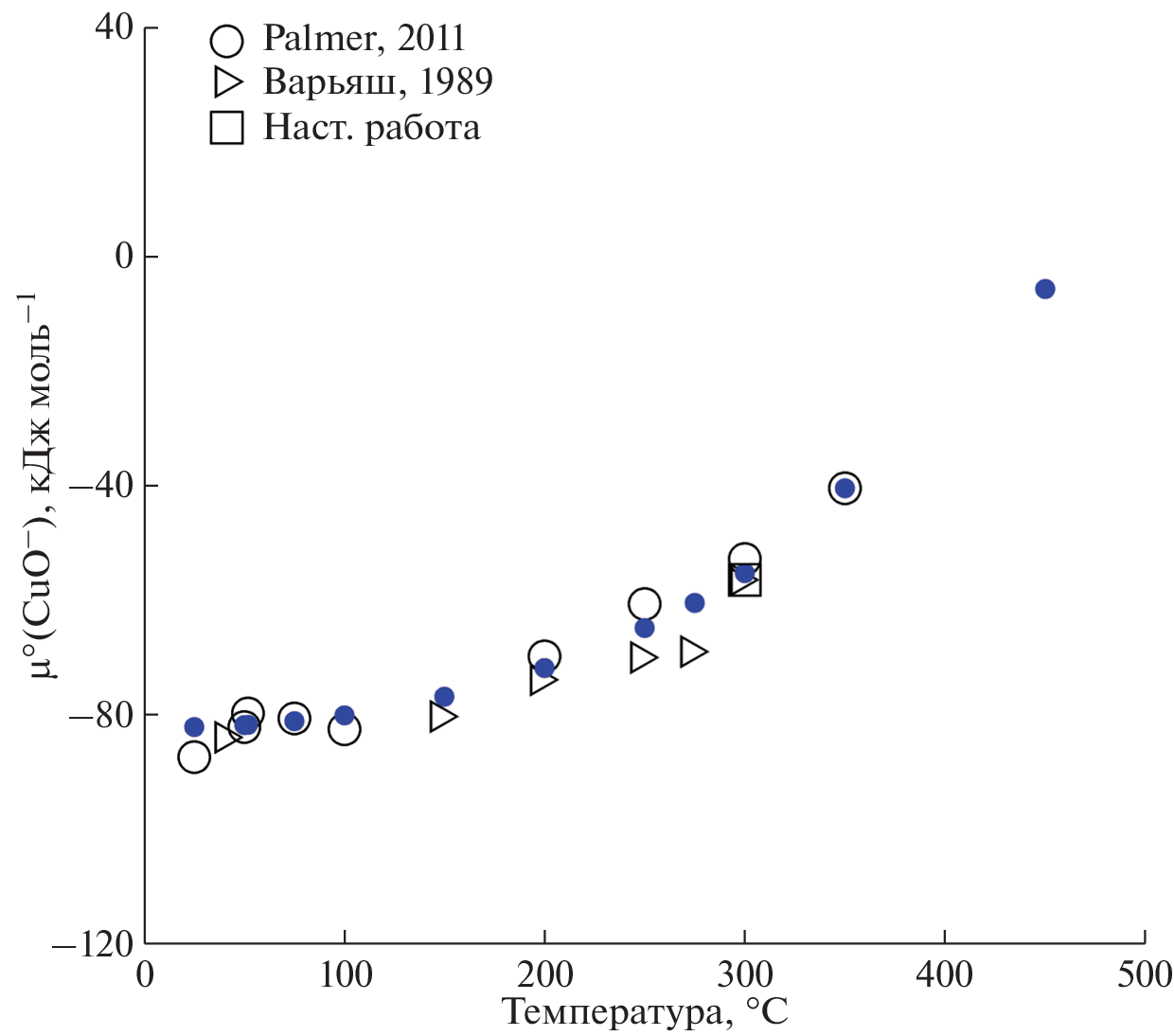 - Palmer D.A. Solubility Measurements of Crystalline Cu2O in Aqueous Solution as a Function of Temperature and pH // J. Solution Chem. 2011. V. 40. P. 1067–1093. https://doi.org/10.1007/s10953-011-9699-x