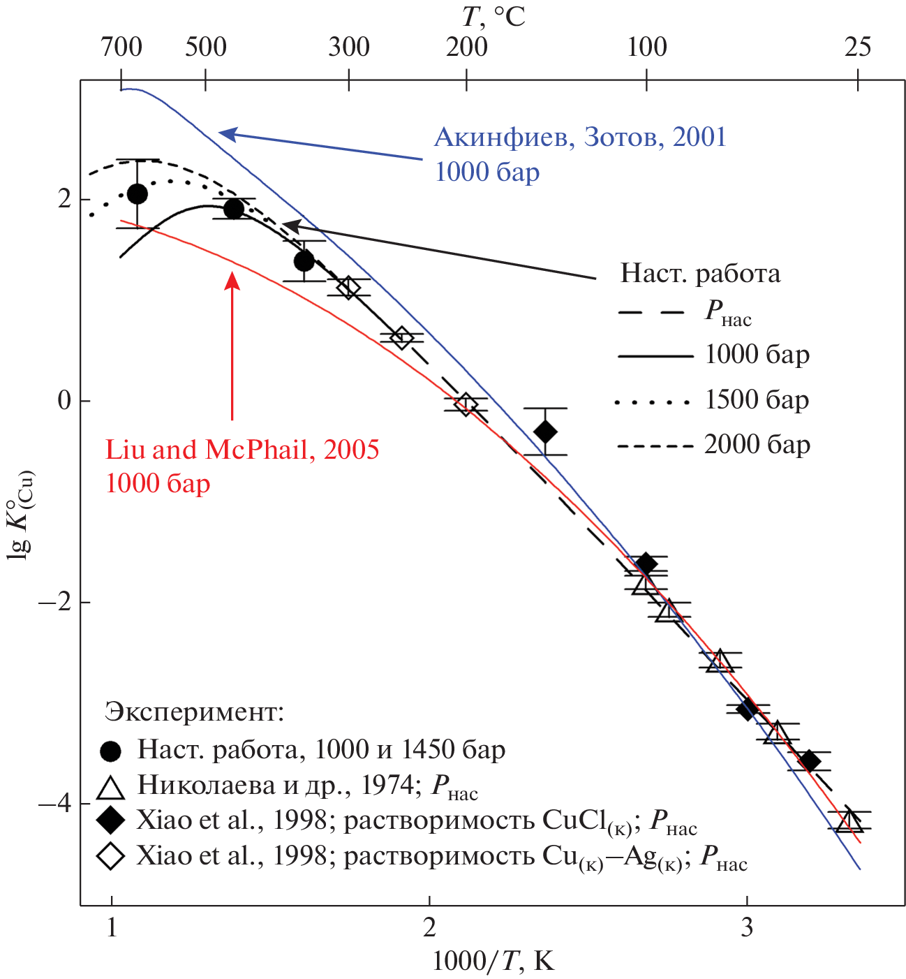 - Xiao Z., Gammons C.H., Williams-Jones A.E. Experimental study of copper(I) chloride complexing in hydrothermal solutions at 40 to 300 °C and saturated water vapor pressure // Geochim. Cosmochim. Acta. 1998. V. 62. P. 2949–2964.
